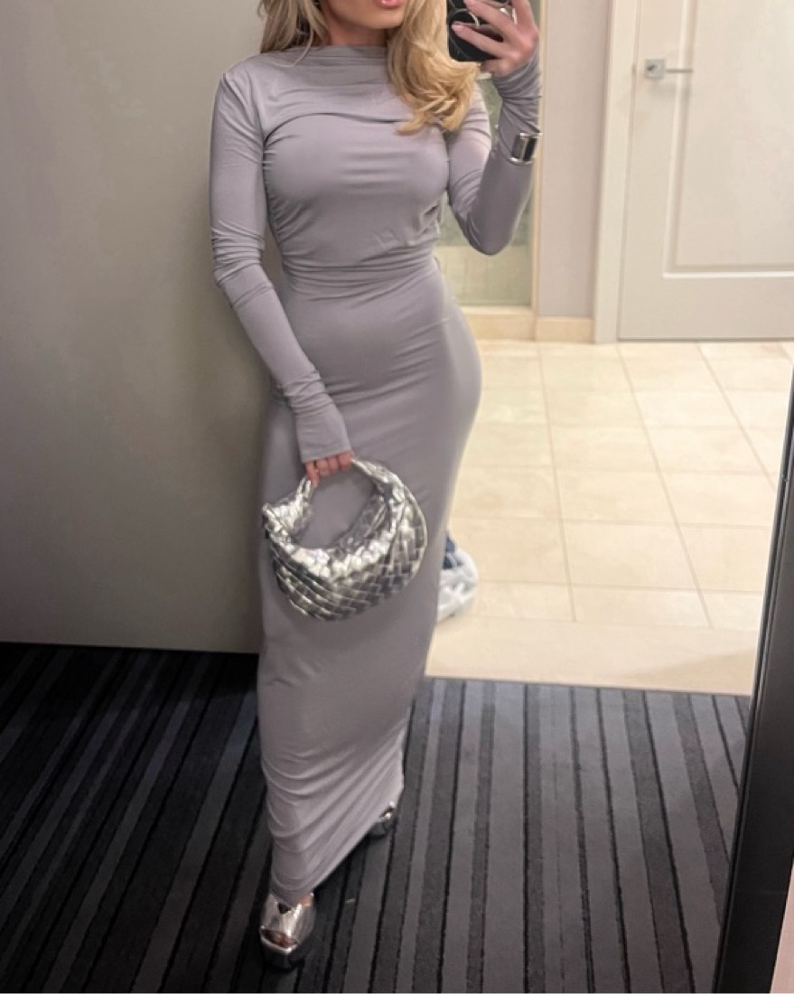 Jersey Backless Maxi Dress in Dove Grey by Helsa - Pickle