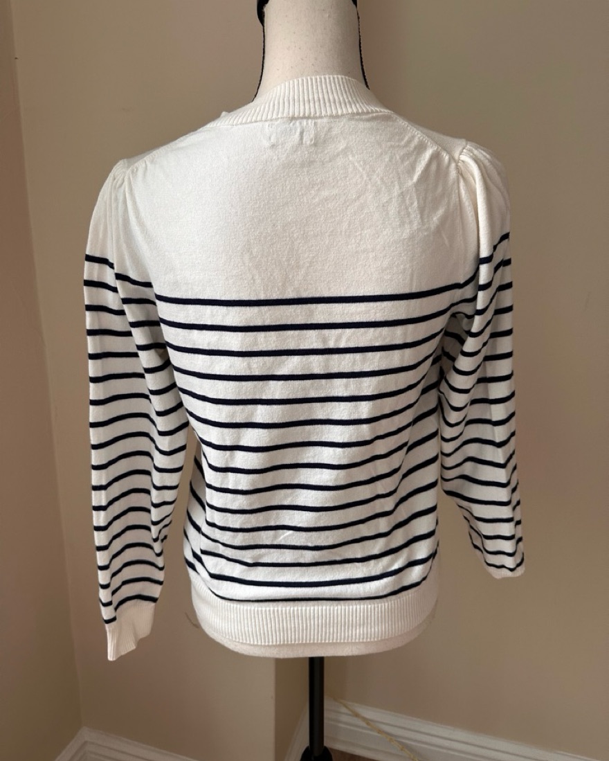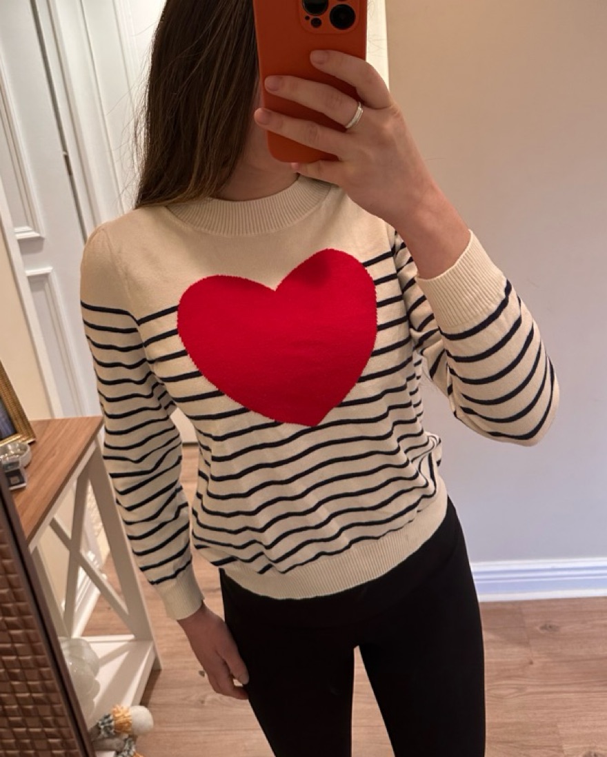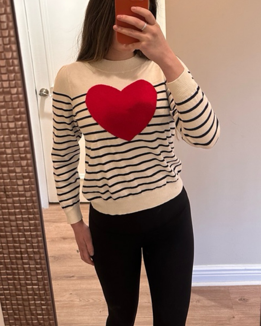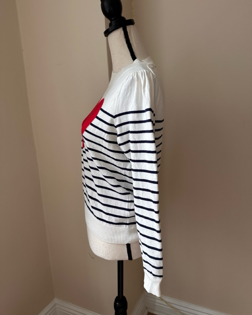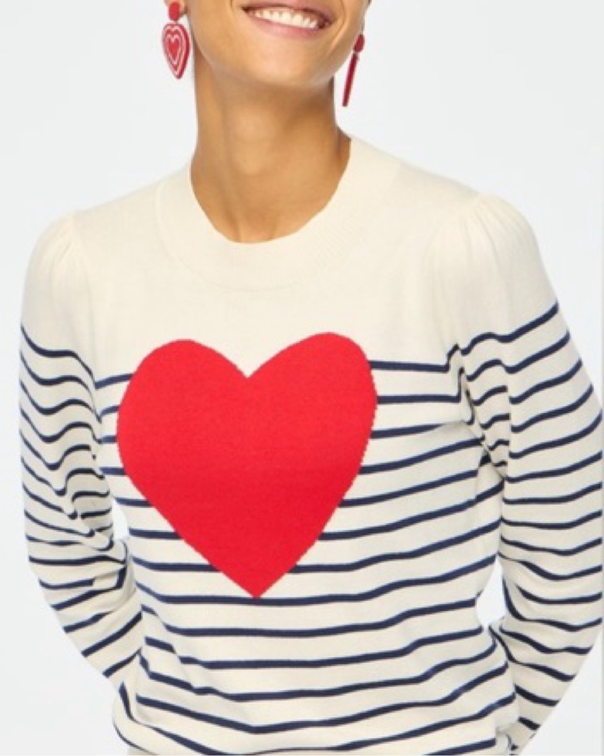 Fits like an XS/Small (I’m a 2 for reference). Cute j crew pullover striped sweater with heart accent. Perfect for a cozy Valentine’s Day or Galentines day party. Excellent condition!