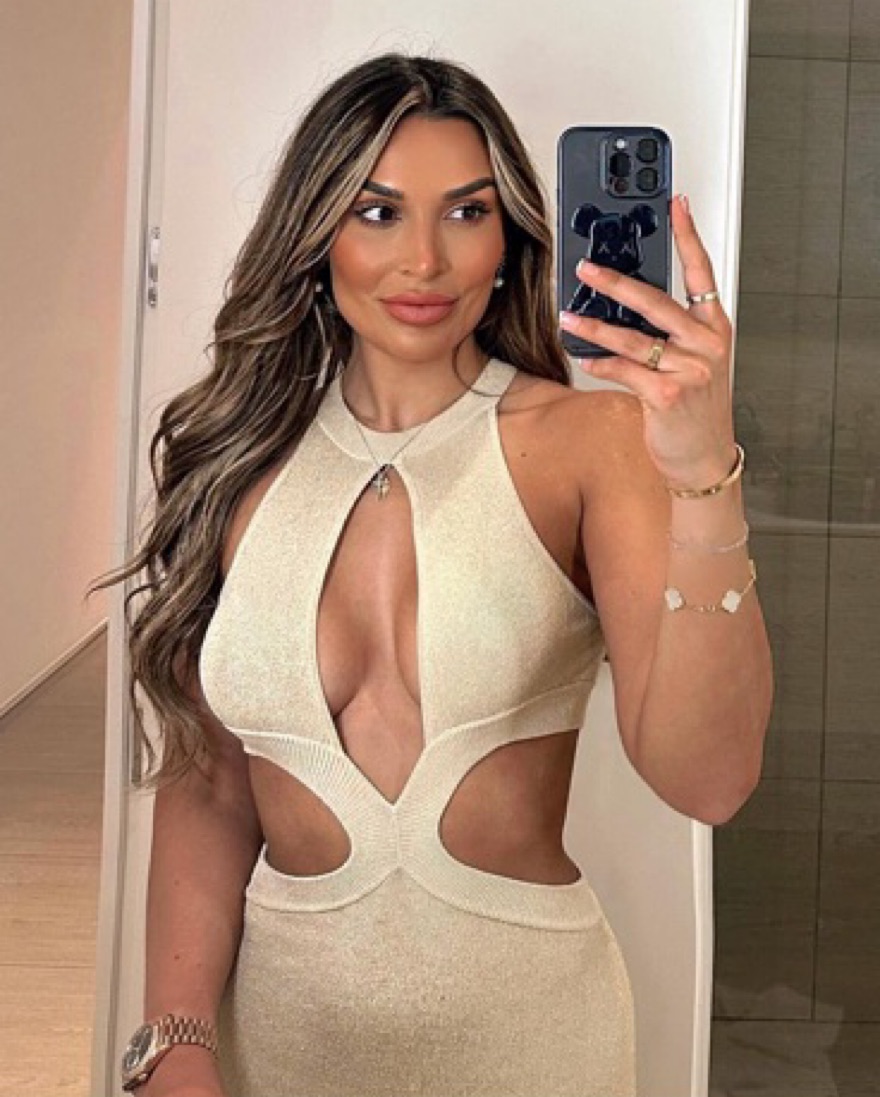 Has a light shimmer. The dress has slight pilling, never worn just cleaned the wrong way **DO NOT WASH THE ITEM** I will handle dry cleaning 💚
