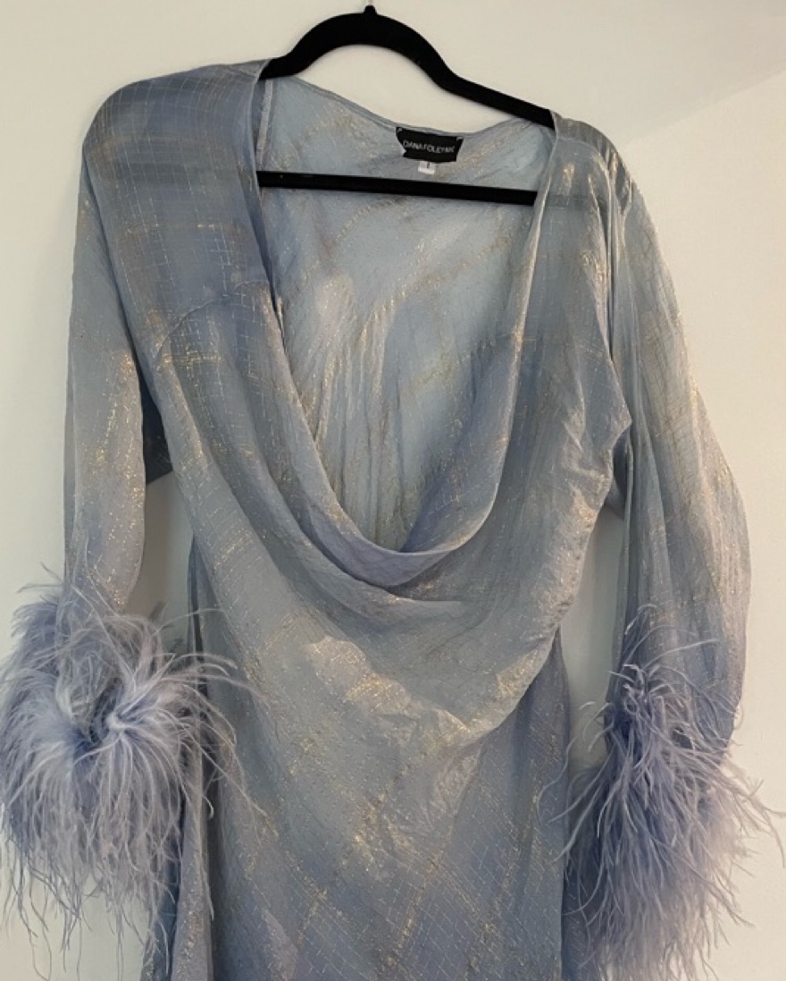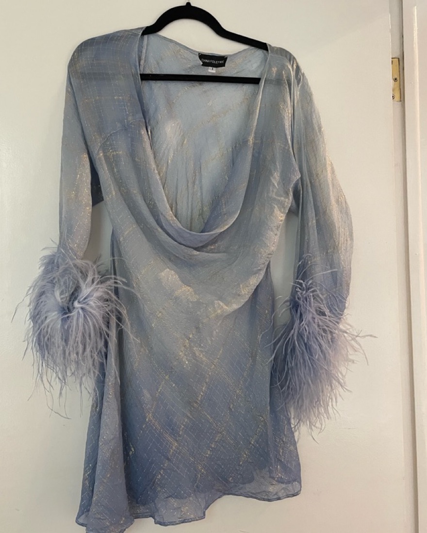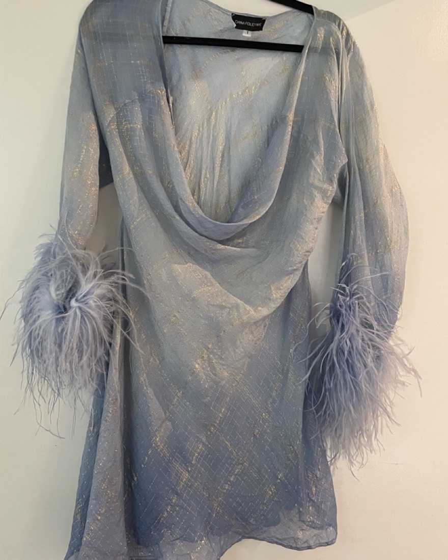 Dana Foley lilac sheer feather trimmed dress. Only worn once. In perfect condition. Can be worn as a fun dress up piece or for a costume.