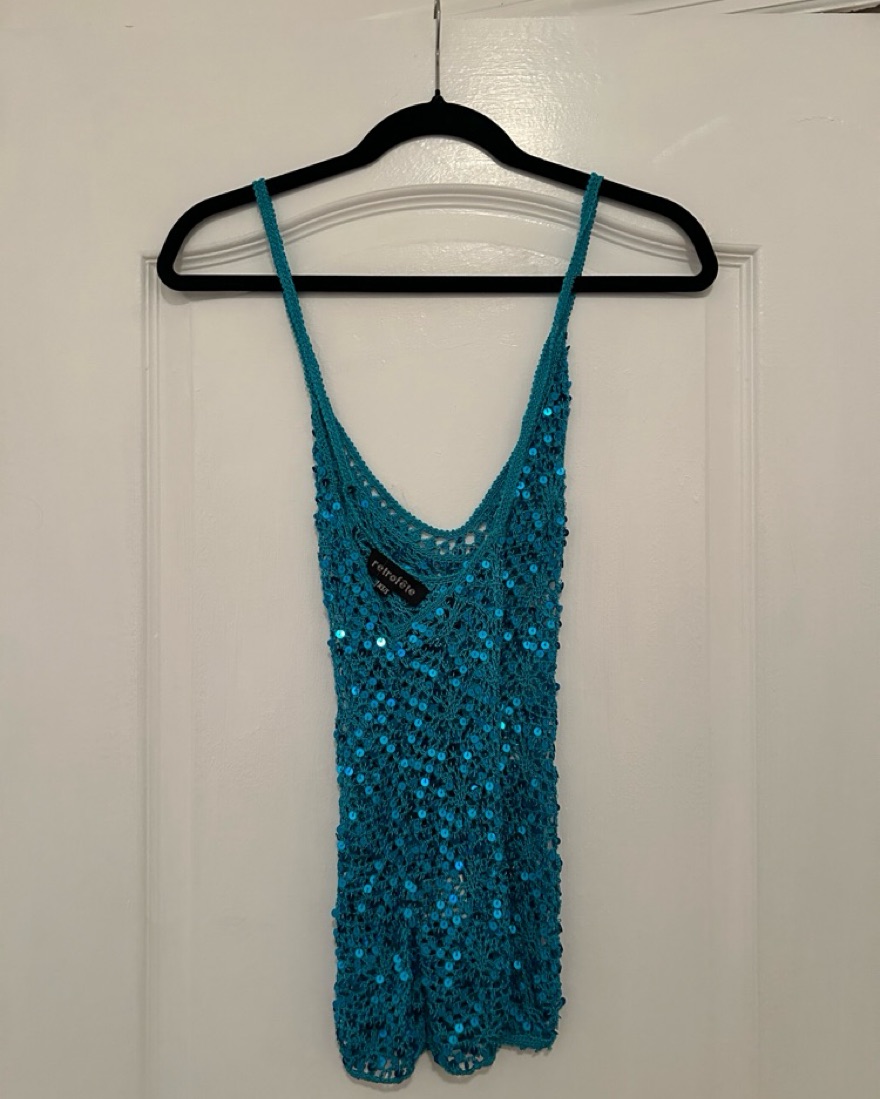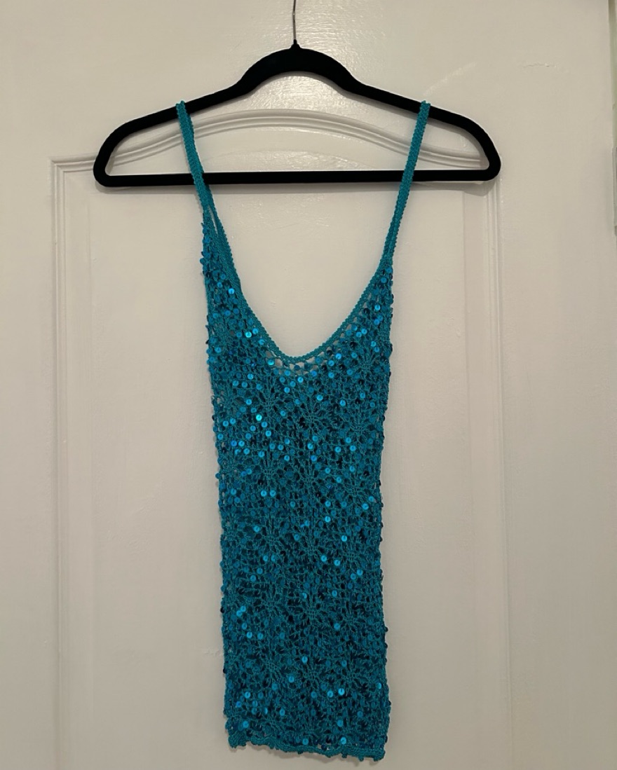 The perfectttt turquoise blue sequin crochet top! Worn once, in perfect condition. Tag says XS/S