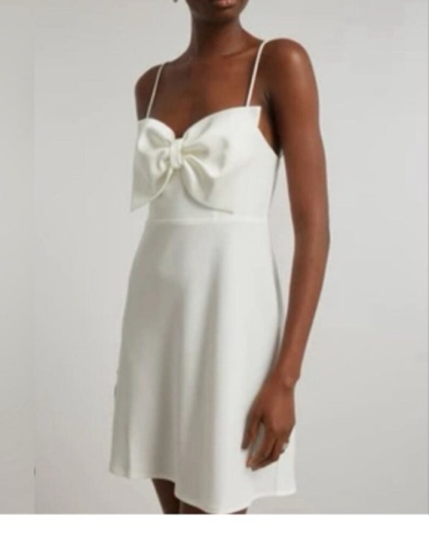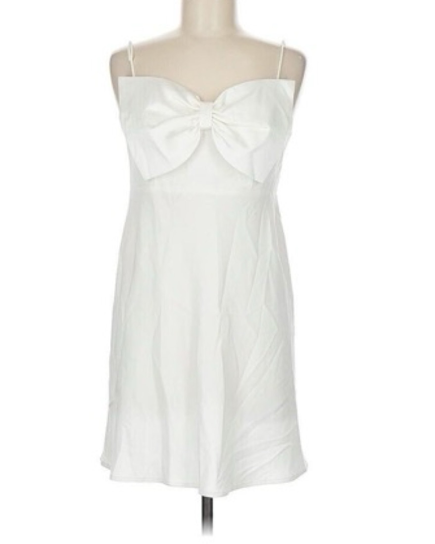 This chic white dress with a beautiful bow detail is perfect for a special occasion. Wear it to a wedding, formal event, or any event where you want to look and feel your best.