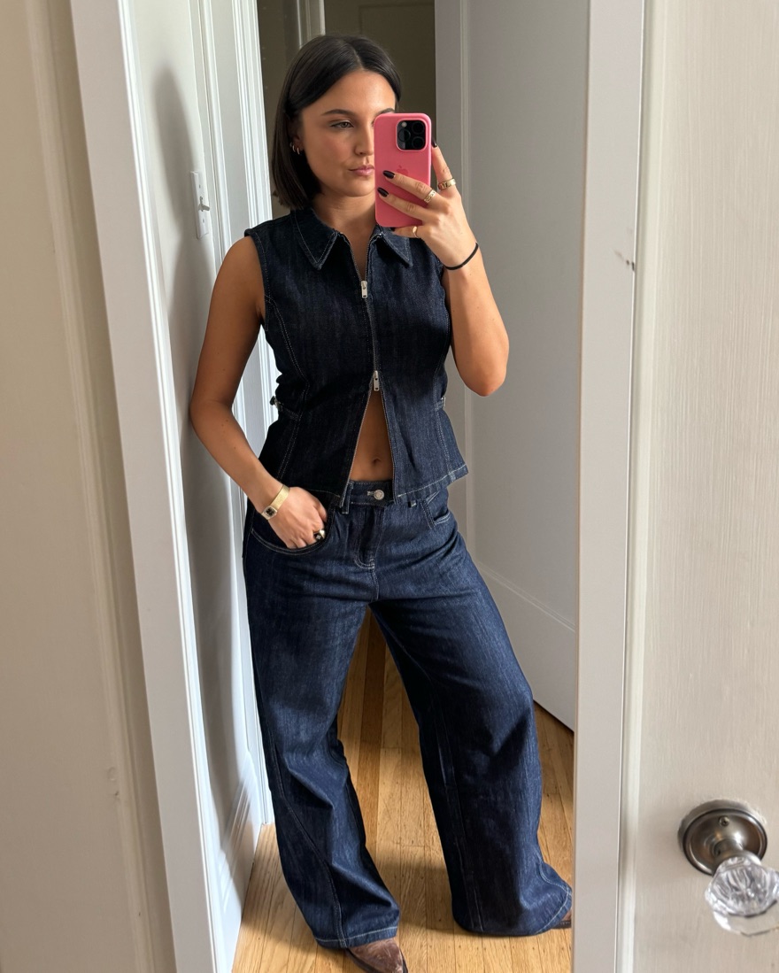 Jeans size 4, top size medium (fits close to a small). Dark denim indigo. Perfect for festivals, Canadian tuxedo looks. Low rise jeans. Price is for the set. DM w questions