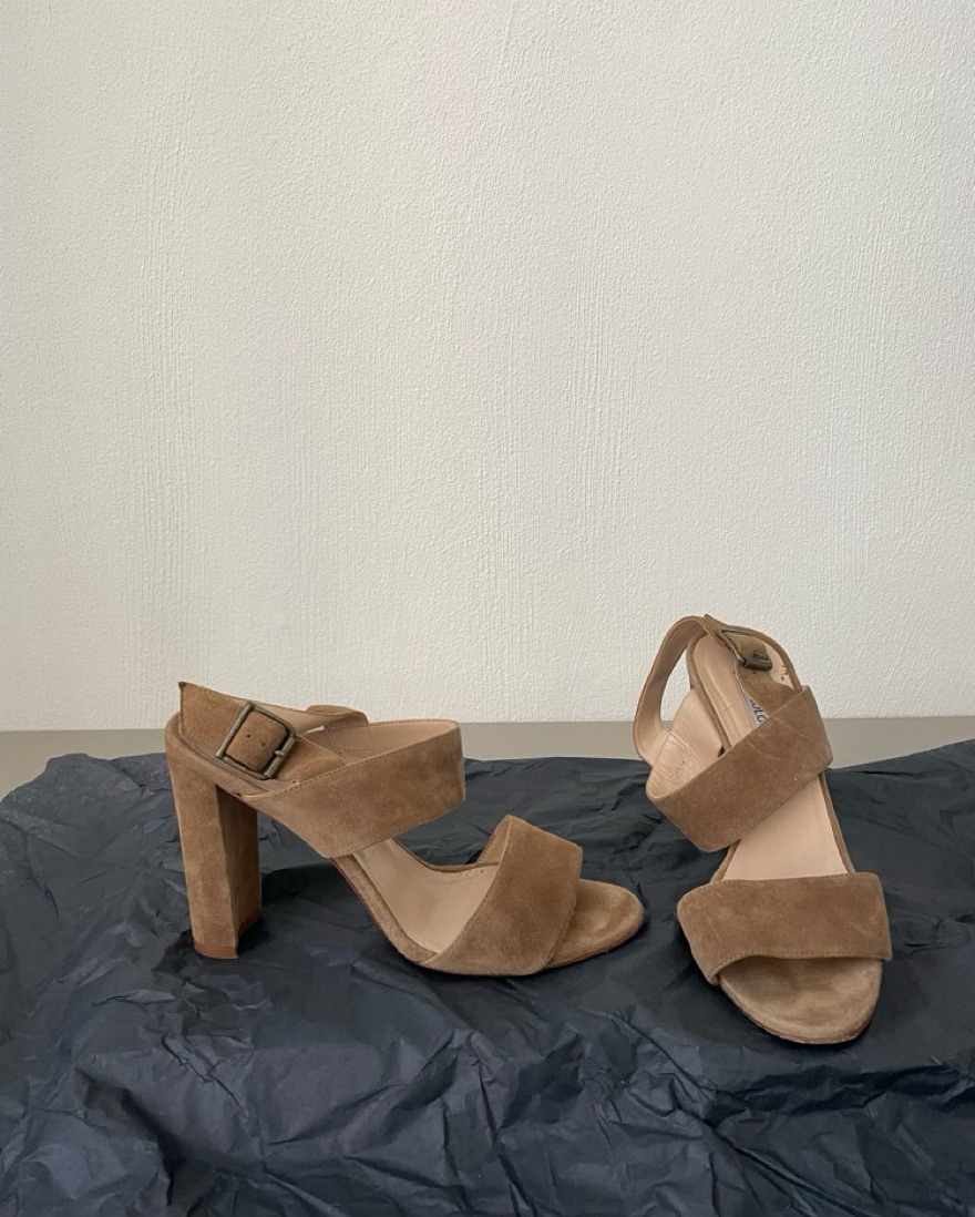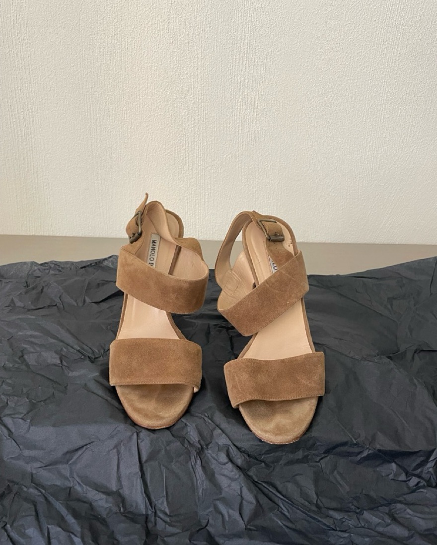 Manolo Blahnik Suade Heels by Manolo Blahnik - Pickle