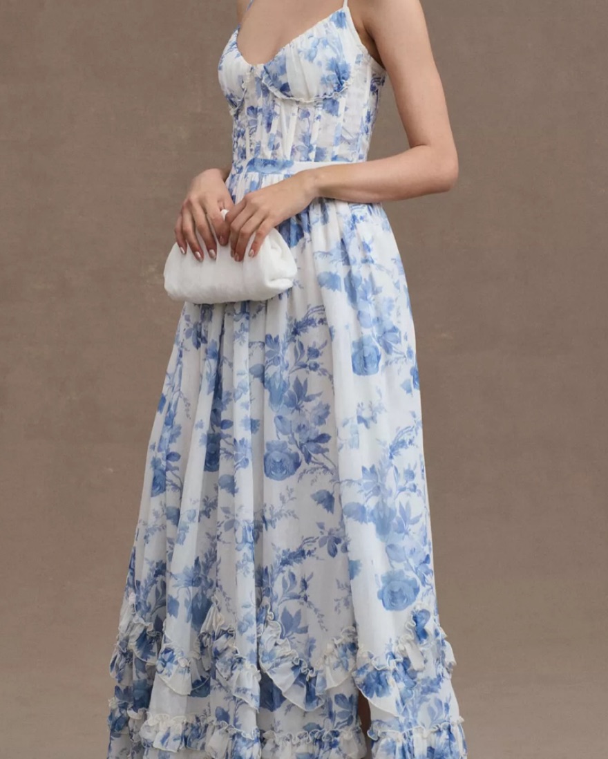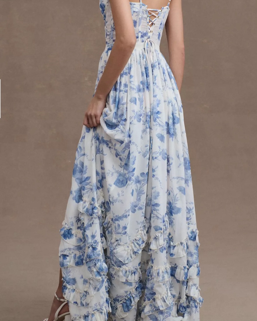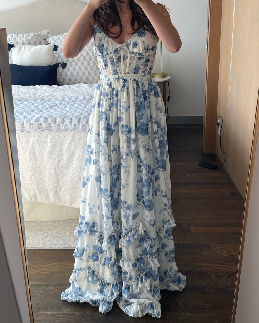 V. Chapman Blue and White Floral Gown by V Chapman - Pickle