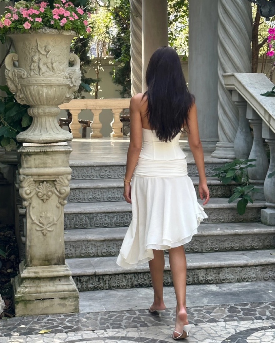 Fits XS/XXS: S top, XS skirt, runs small. Lisa Button Up Halter is a corset inspired essential. Front button details, 90's inspired halter neck, ruched bustier detailing. Diana chiffon midi skirt is a low waist midi skirt essential. A classic nineties shape with a daring high side slits and cut