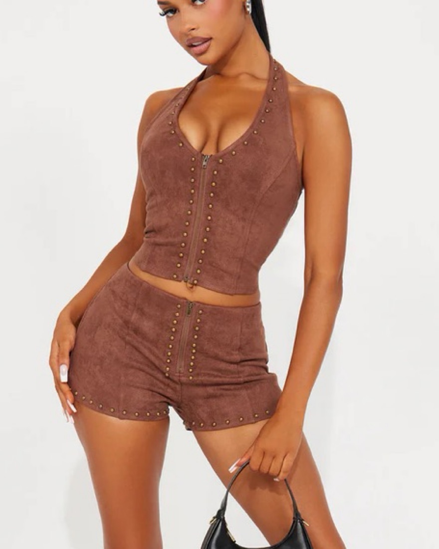 Studded Suede Tank & Shorts set by Fashion Nova - Pickle