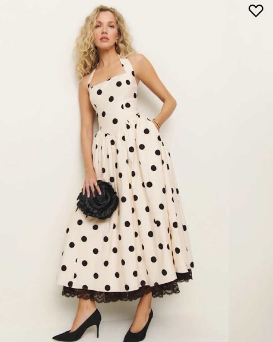 Reformation Talvi dress. Elegant Polka dot midi dress. Perfect for any occasion formal or vacation. Got so many compliments on this one!