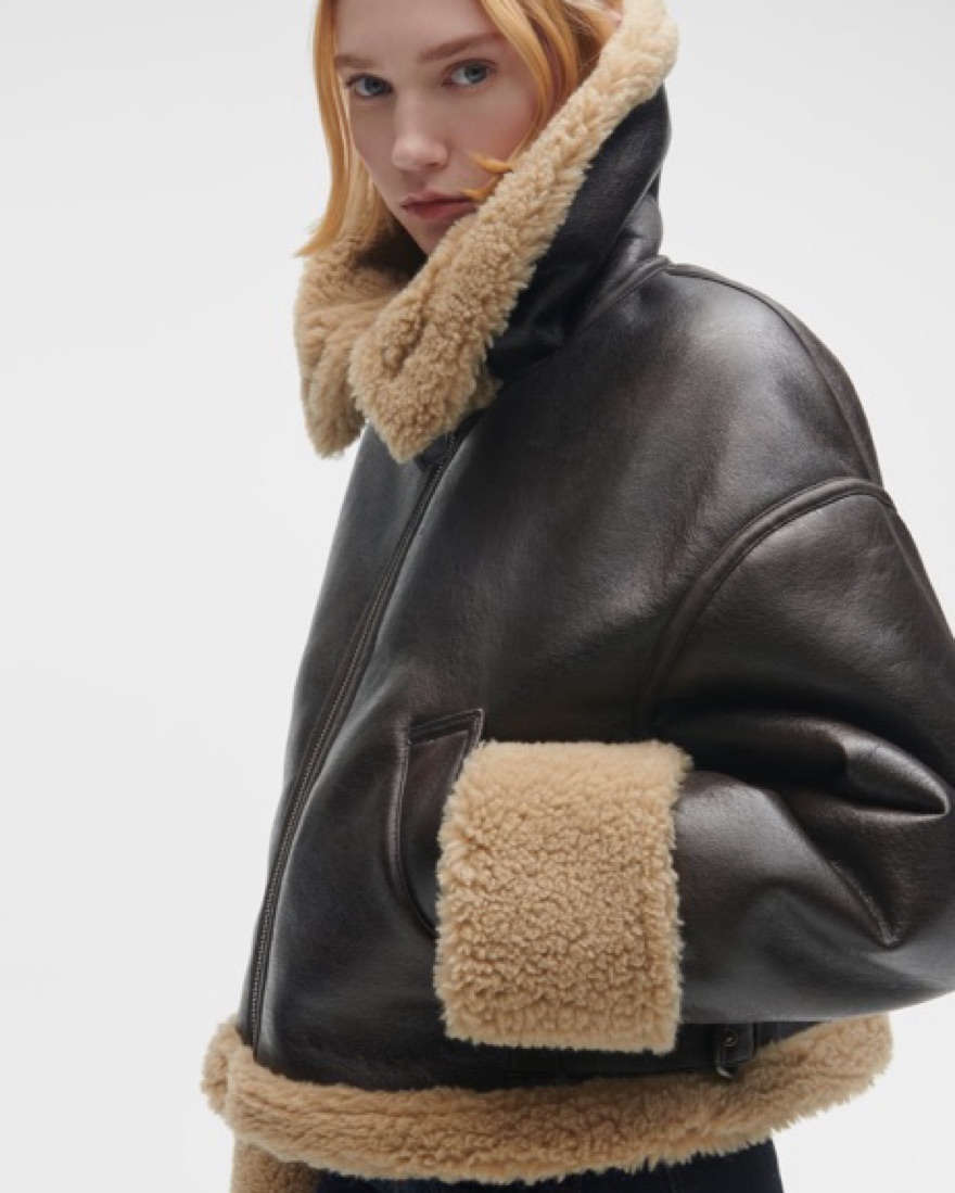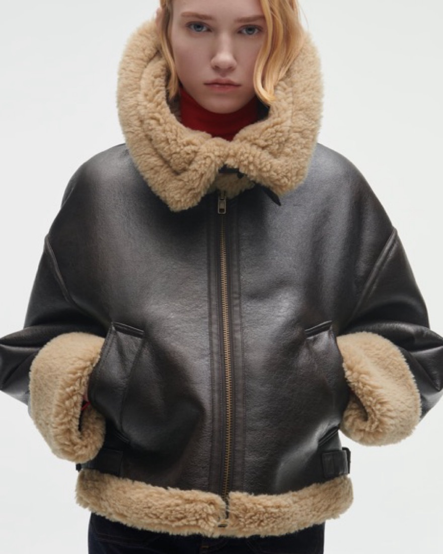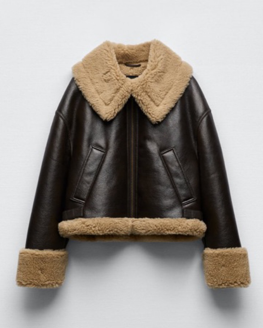 Zara Faux Brown Leather Fur Jacket by Zara - Pickle