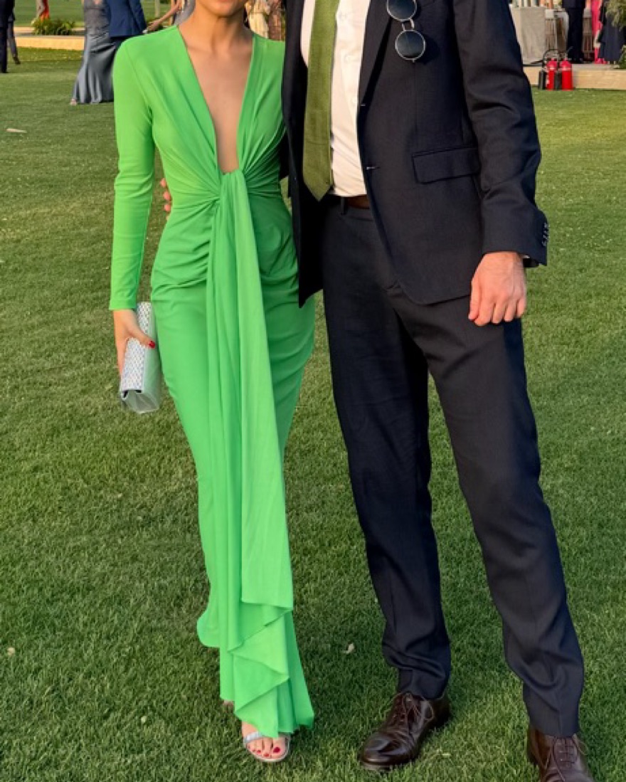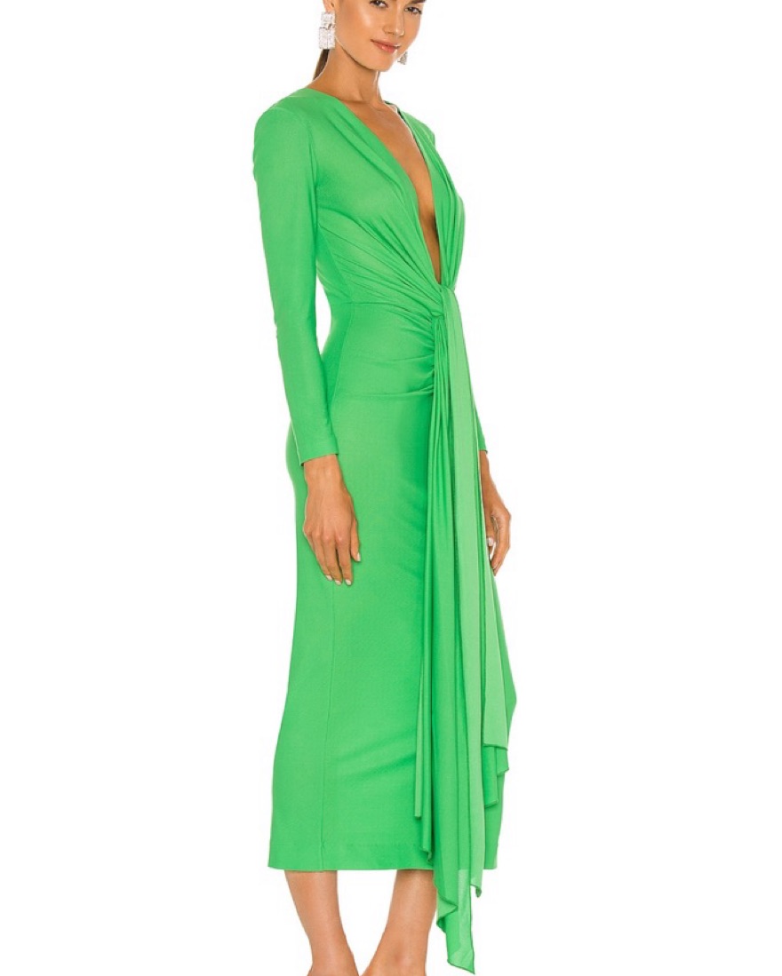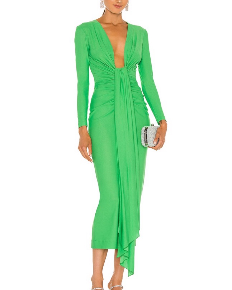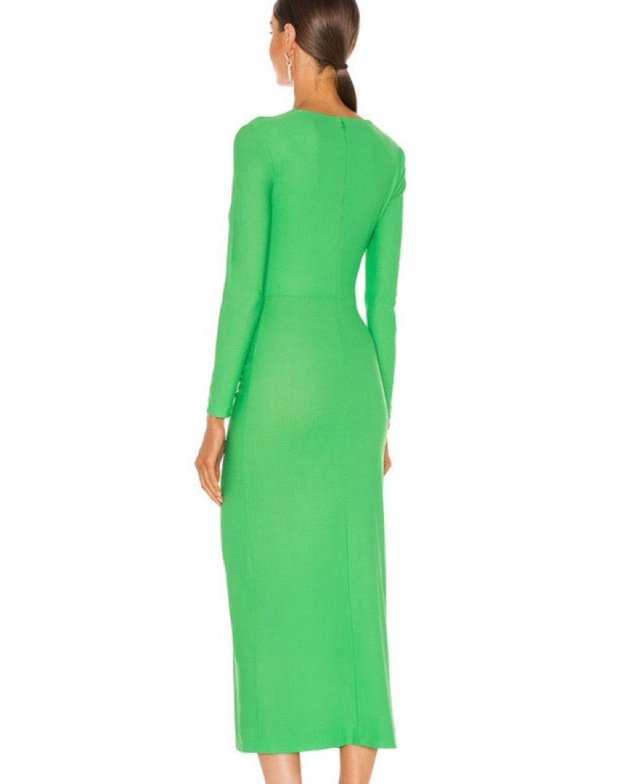 This stunning green midi dress is perfect for a formal event or special occasion. The ruched detailing creates a flattering silhouette, while the bold color makes a statement.