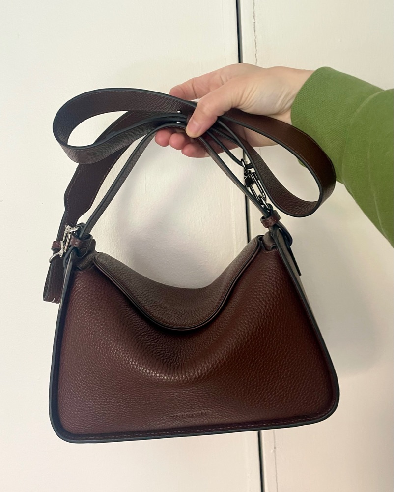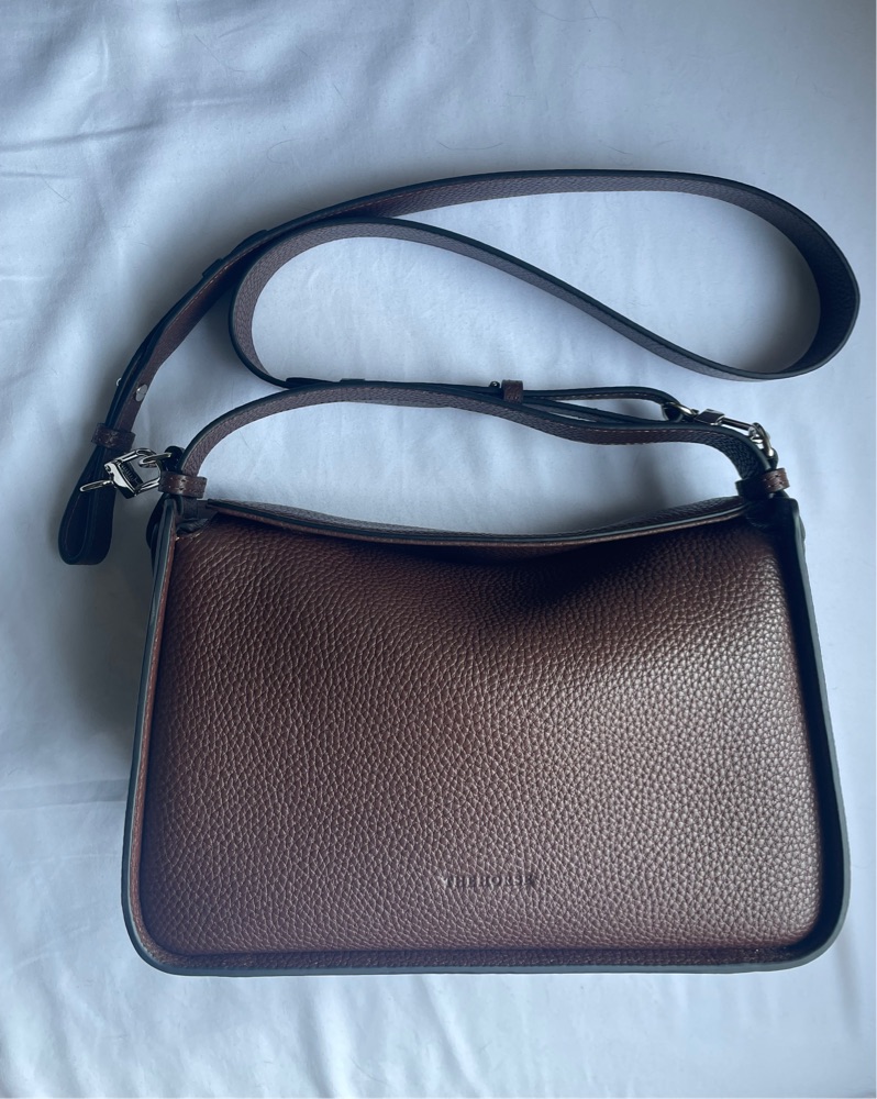 Brand new in Coffee colored pebbled leather. Really spacious with an adjustable strap.