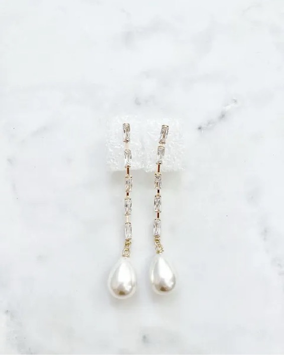 Approx 2.5” drop Gold, pearl and crystal Post back Lightweight