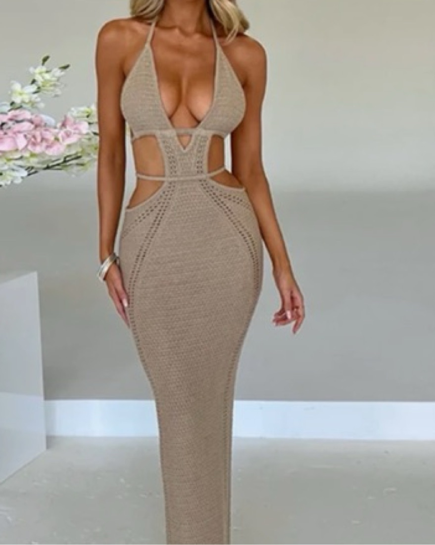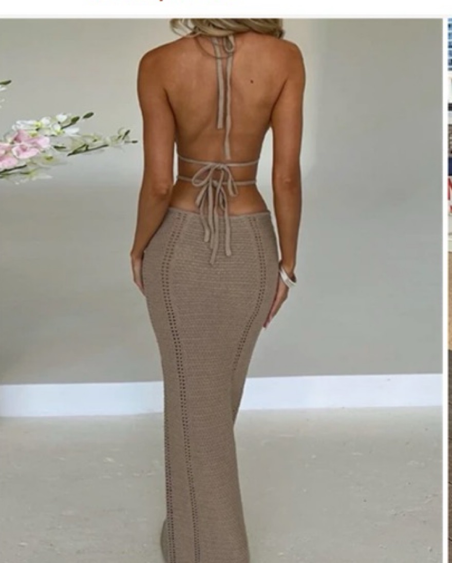 Haltered Knitted Bodycon Long Dress for Women Summer