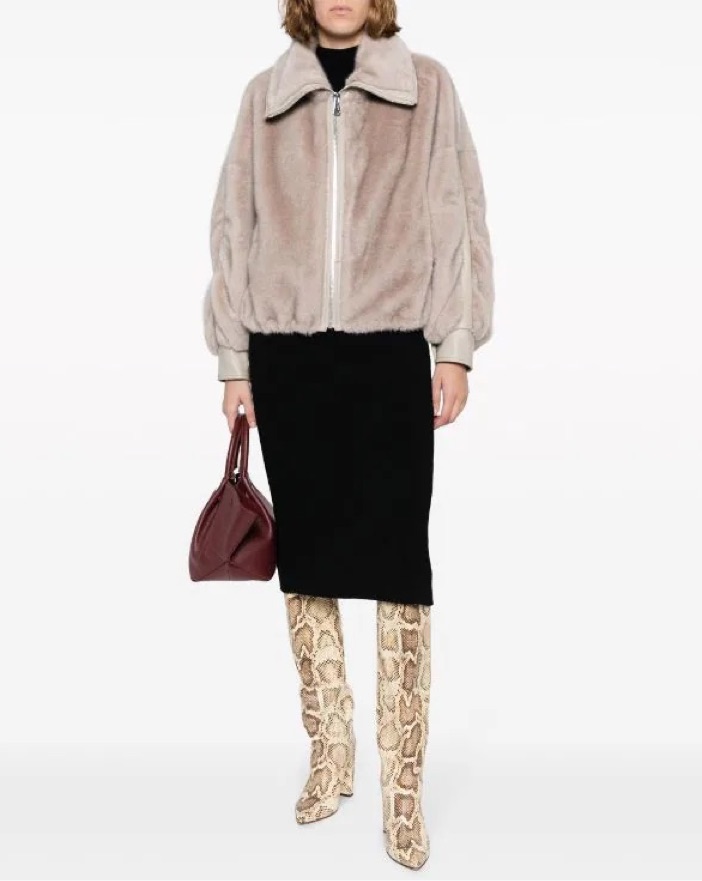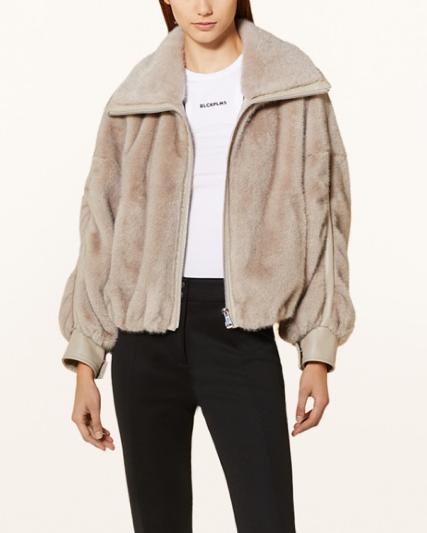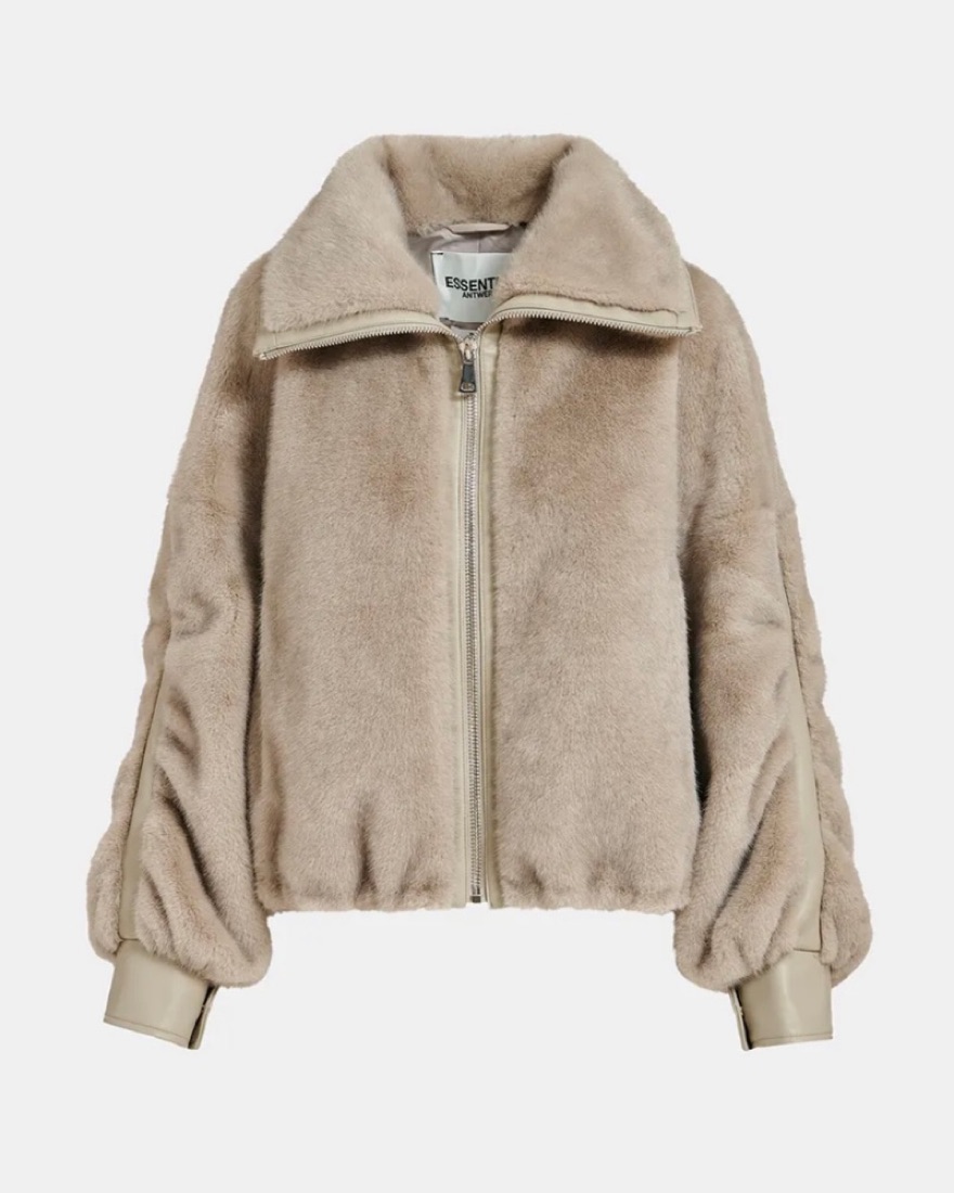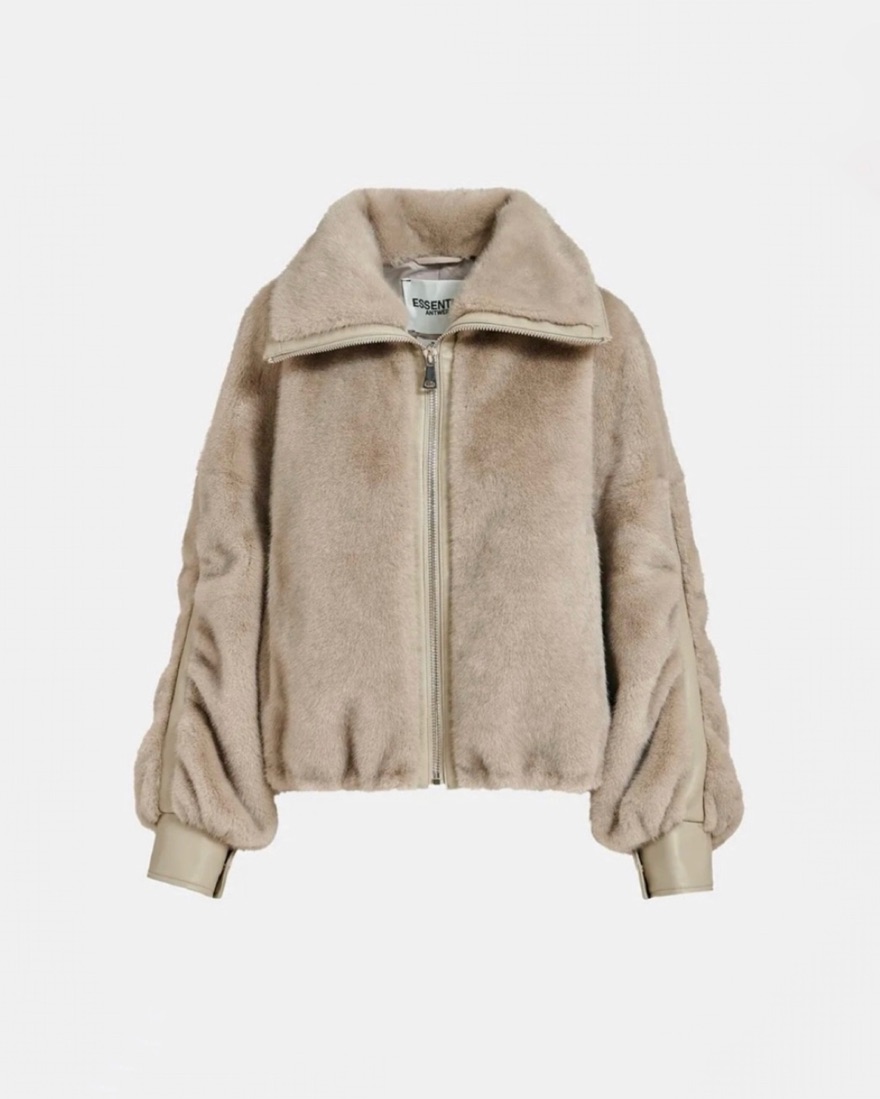 Renting my grey faux fur Essentiel Antwerp Jacket in a size small, so cute for fall transitional weather, so easy to dress up or down cutest grey jacket / grey coat with silver hardware oversized fit cutest fall jacket