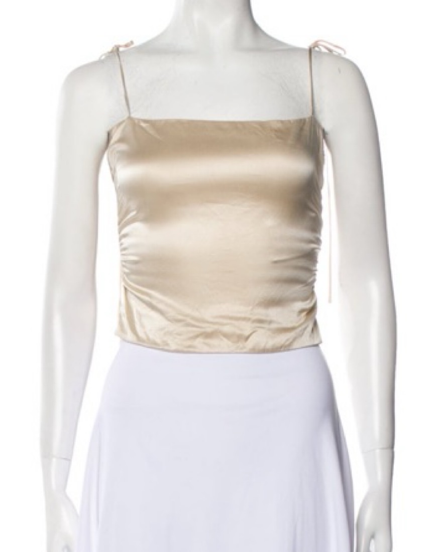 This elegant satin camisole is perfect for a night out on the town. The ruched detailing adds a touch of sophistication
