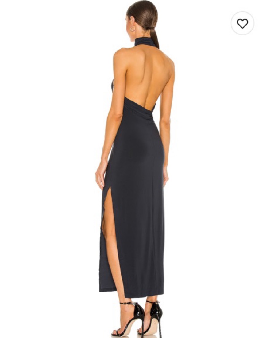 Sleek high neck halter dress in slate - stretchy and bbest fits XS or Small