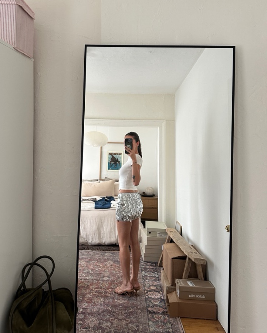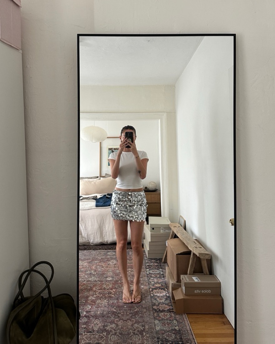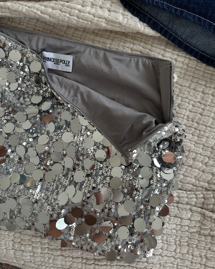 Riego silver sequin mini skirt has a little stretch to it super flattering cut
