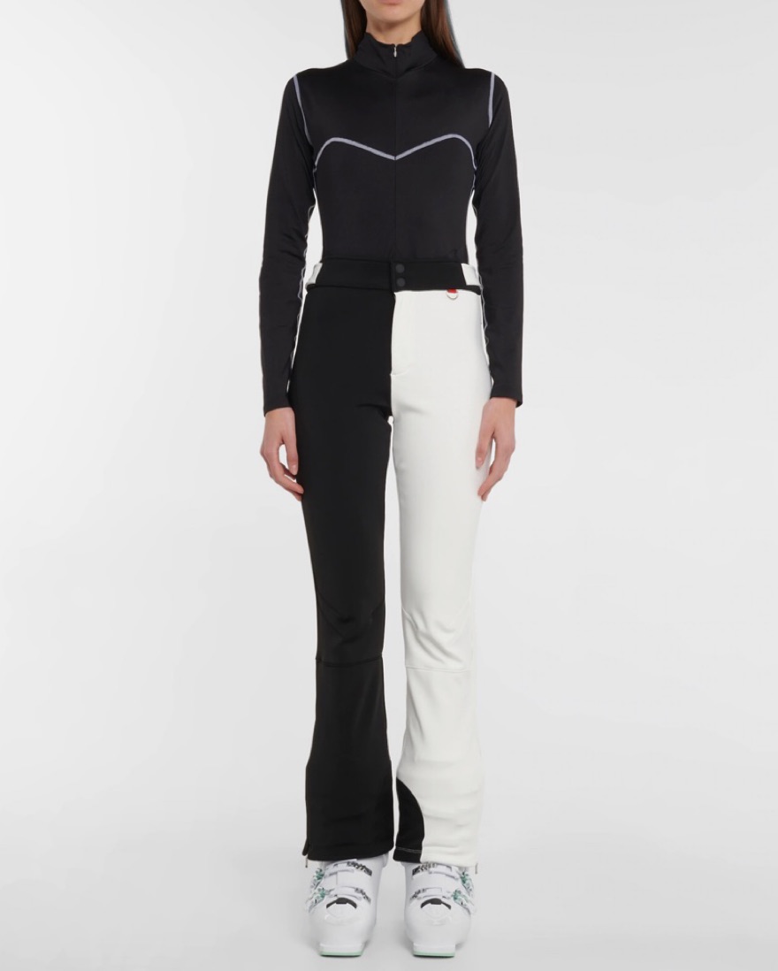 Worn only once. Waterproof fabric. Adjustable at the waist. Slim-leg with a flared hem. High-waisted. Inseam length approximately 30.5 in. Retail for $600.