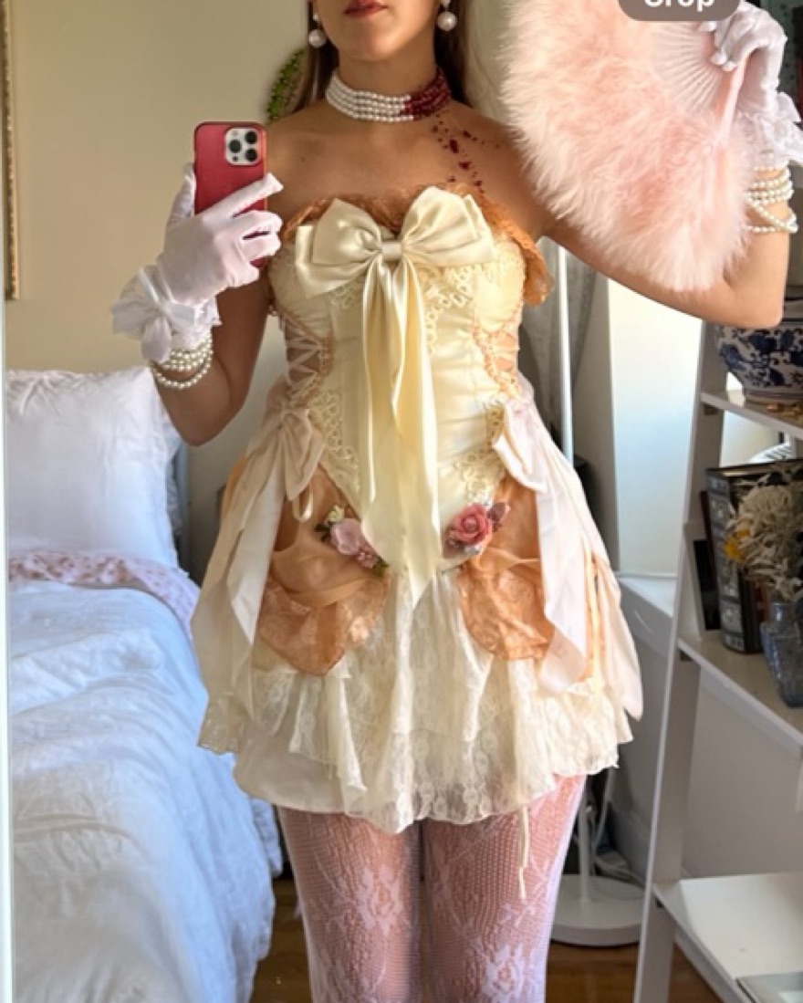 can rent corset + lace skirt together or seperately! worn for marie antoinette costume š°š¤ iām 5ā5, fits size 2-4 best