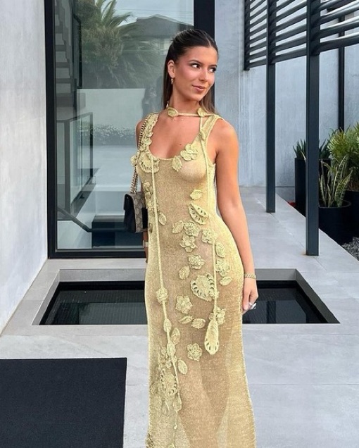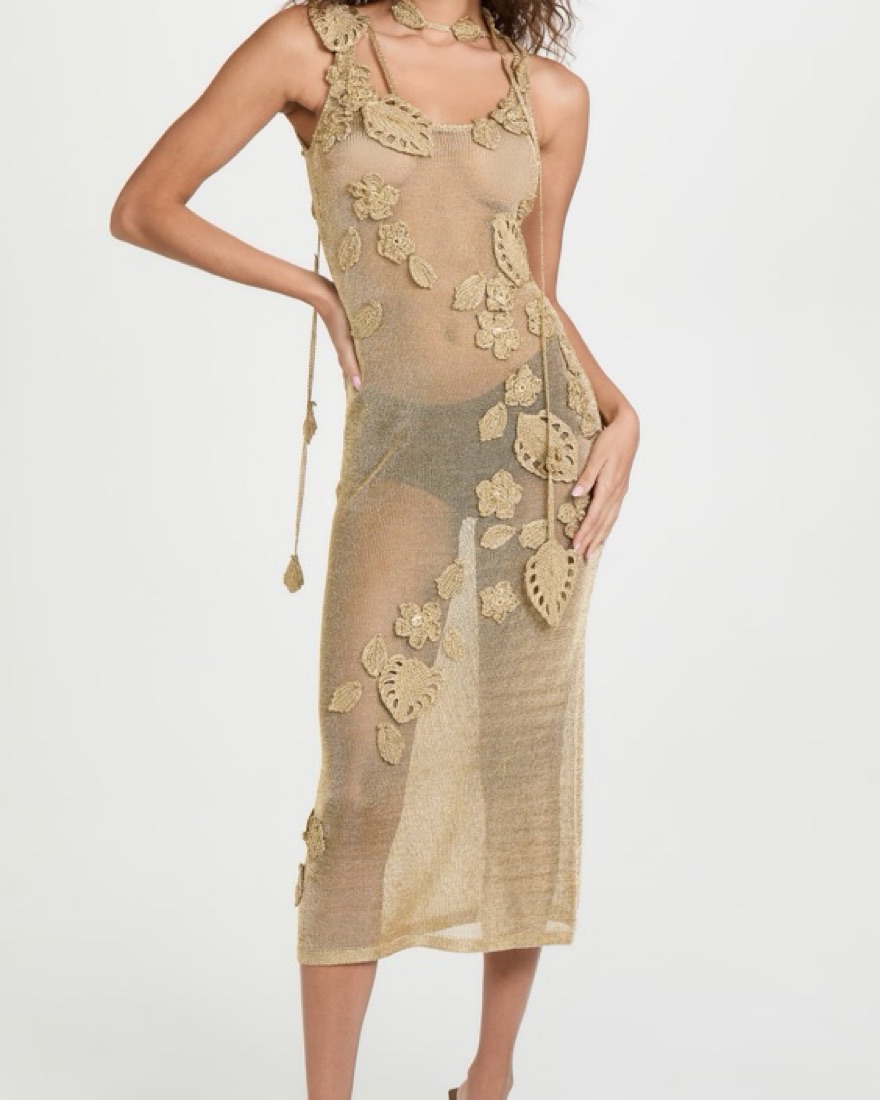 Culta gaia Pemma dress hand knit glitter yarn, the dress comes with slip or can be worn as a coverup! Definitely a show stopper and delicate piece! Selling this dress please dm and I can show you the pics of my dress