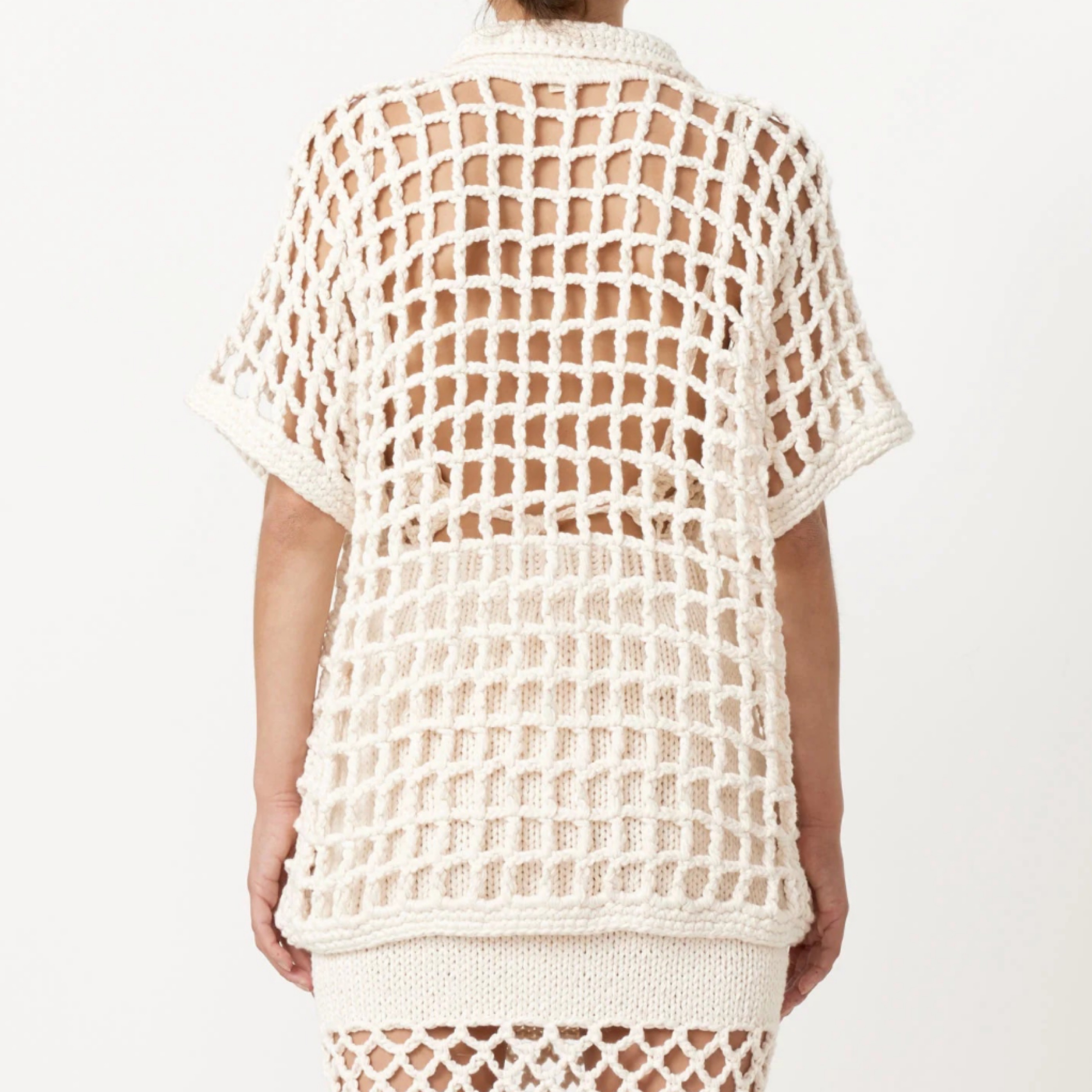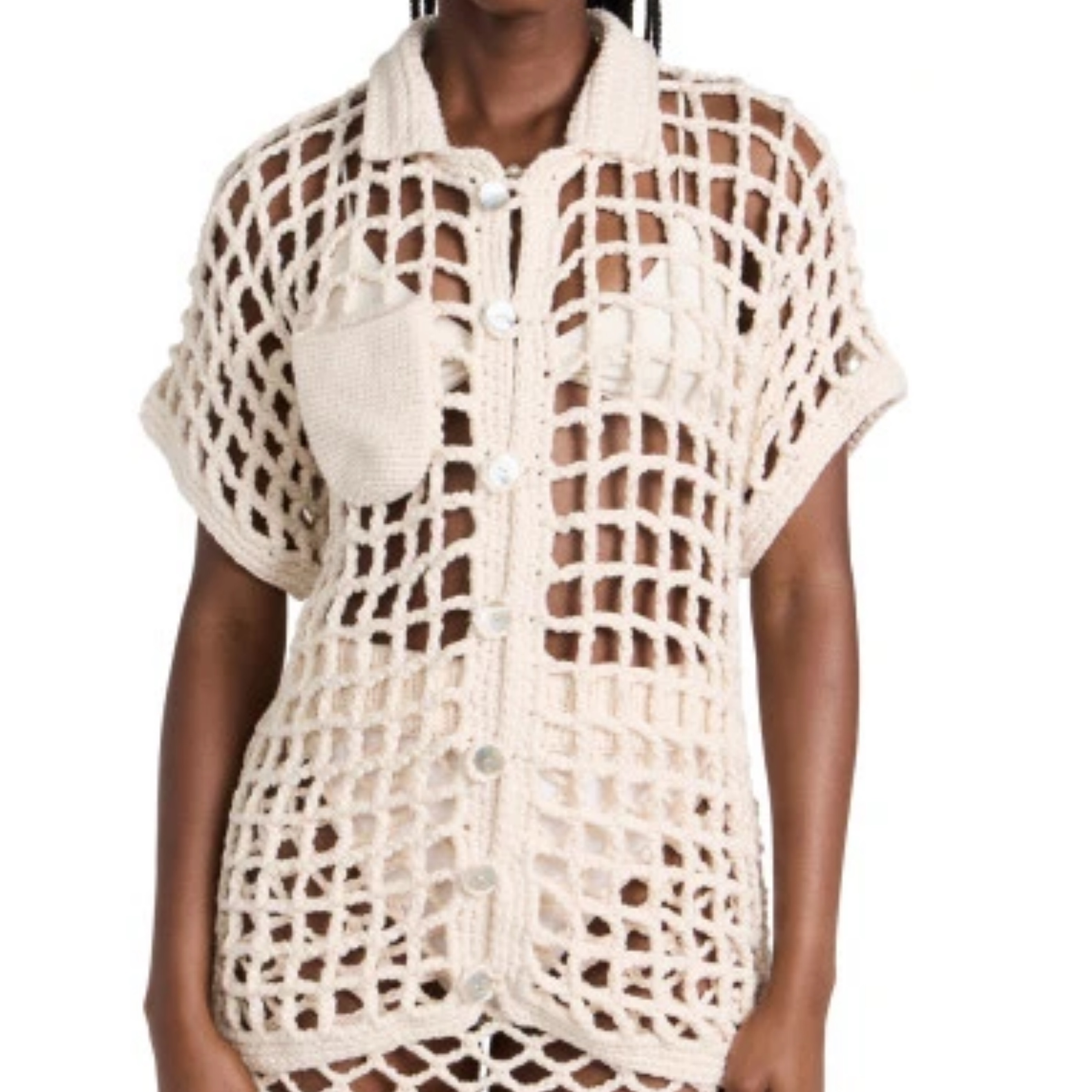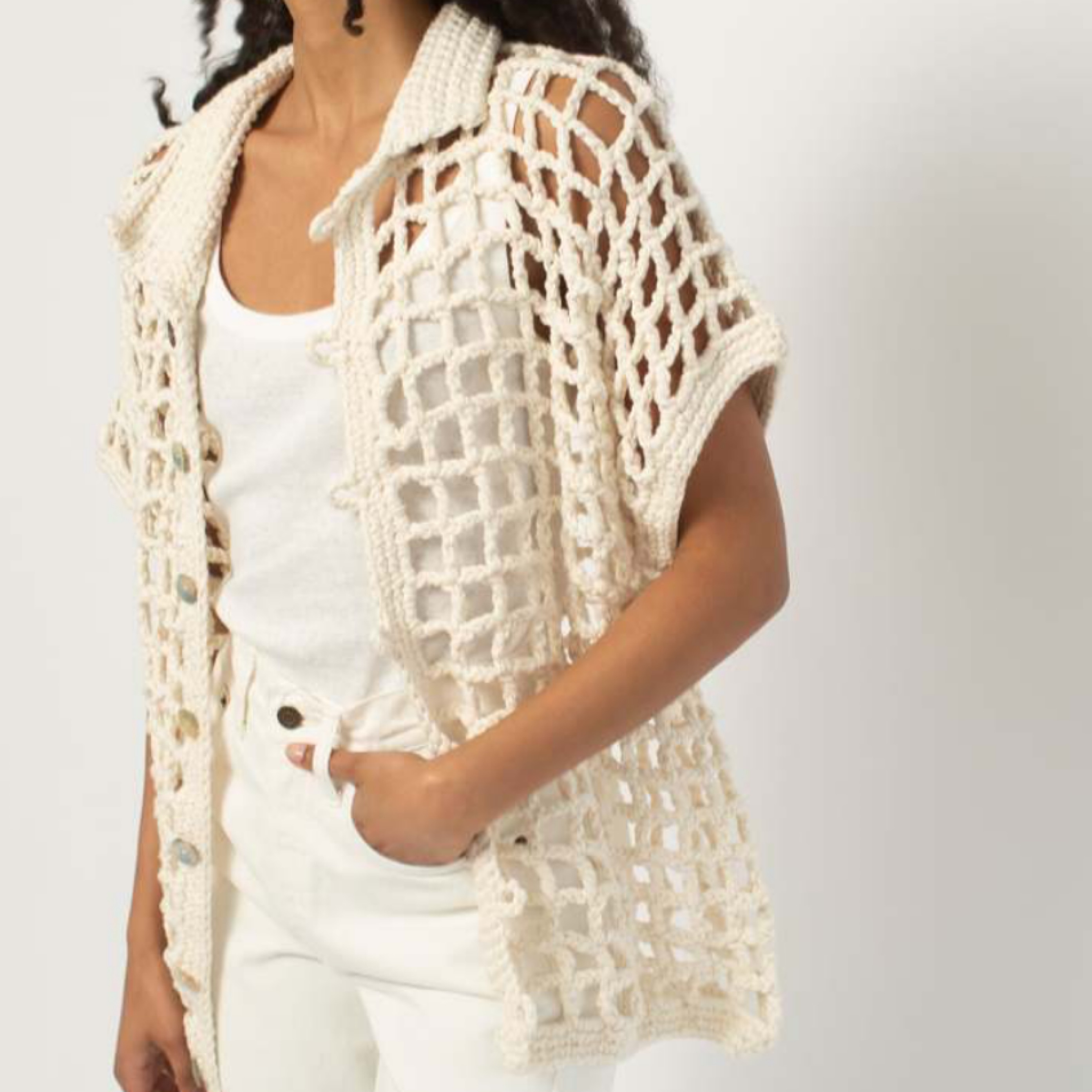 Crochet open knit pattern button shirt - adds a fun layer to any tank or shirt!