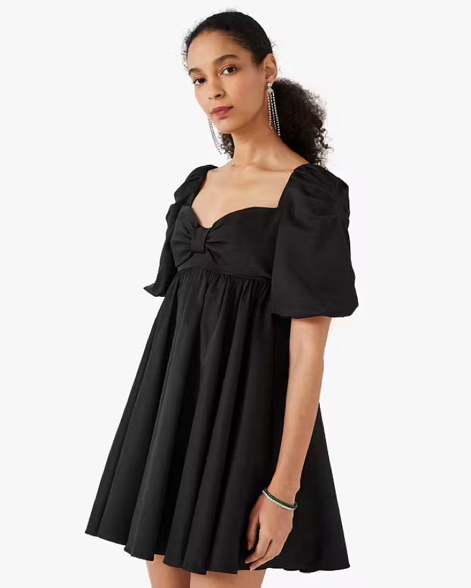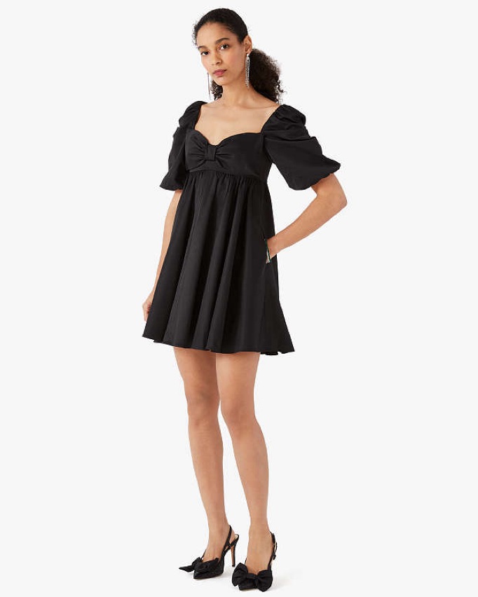 Kate Spade Babydoll Bow Dress! Wore for my bday w/ knee high leather boots and received so many compliments! <3 very thick luxurious material. Can def fit above a 0 (i’m size 6) because it flares out, however prob better for the smaller-chested