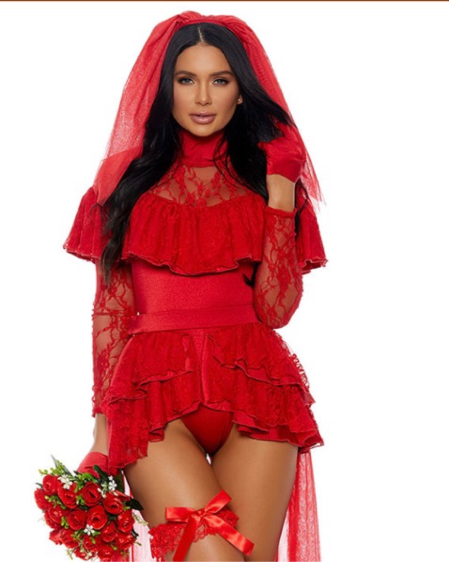 Full 4 piece dead bride costume. Includes long train skirt, this costume is very detailed and beautiful can be worn with tights