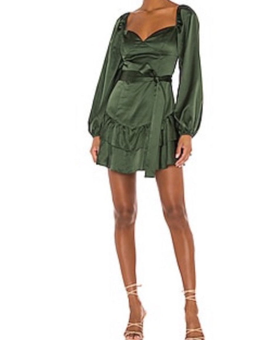 Revolve Etta Mini Dress in Autumn Green by Majorelle - Pickle