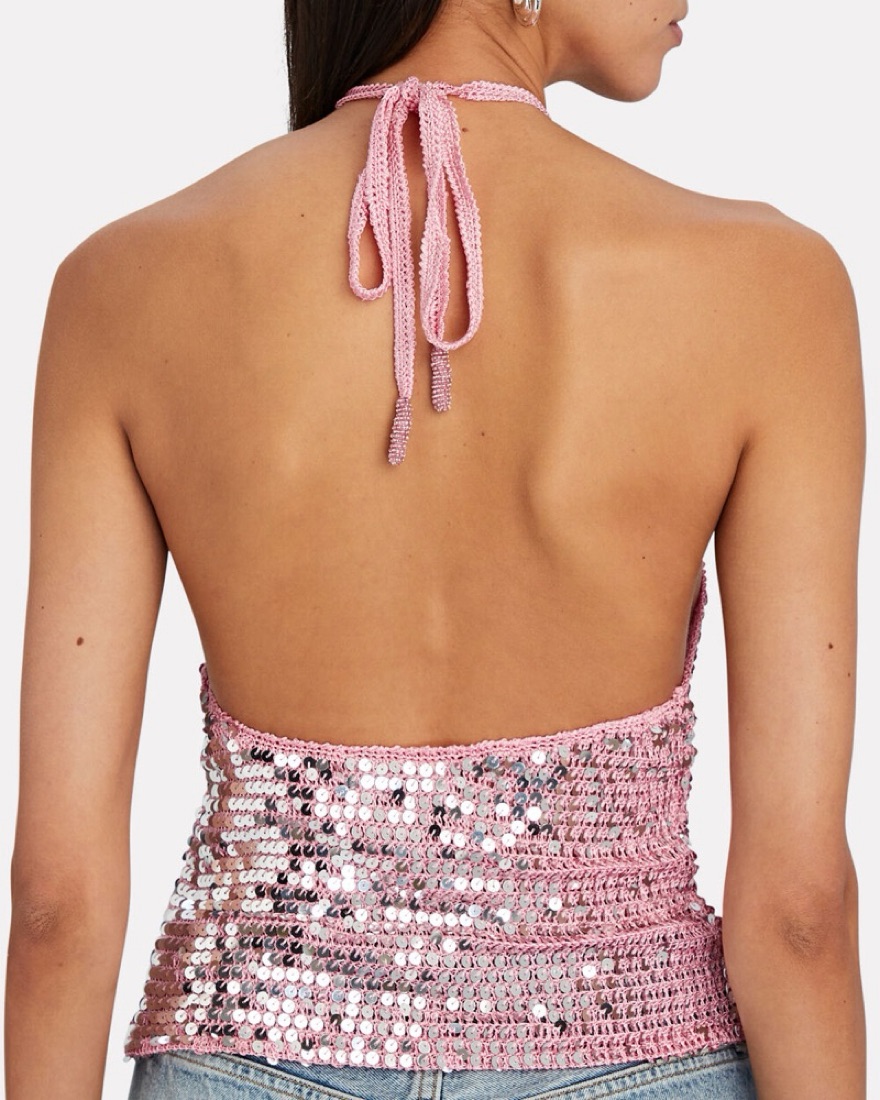 Retrofete Pink Sequin Halter Top by Retrofete - Pickle
