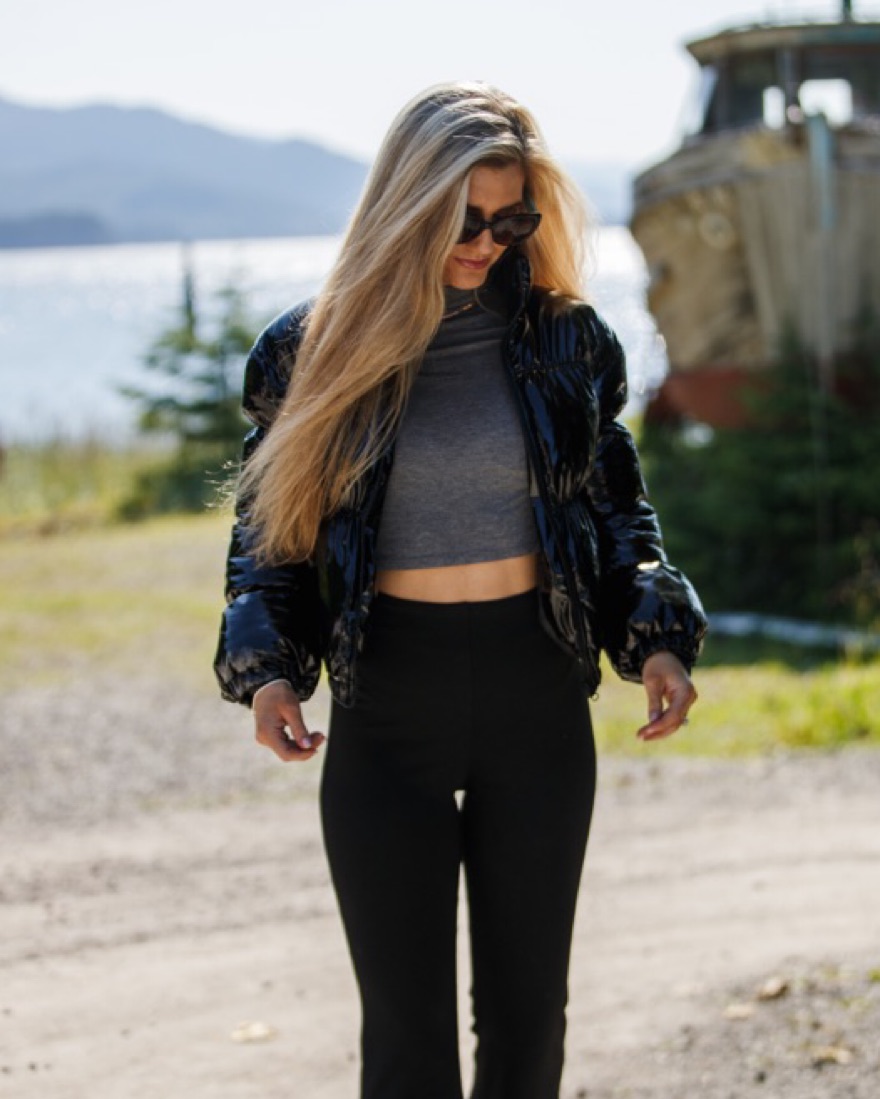 Black Shiny Puffer Jacket by Steve Madden - Pickle