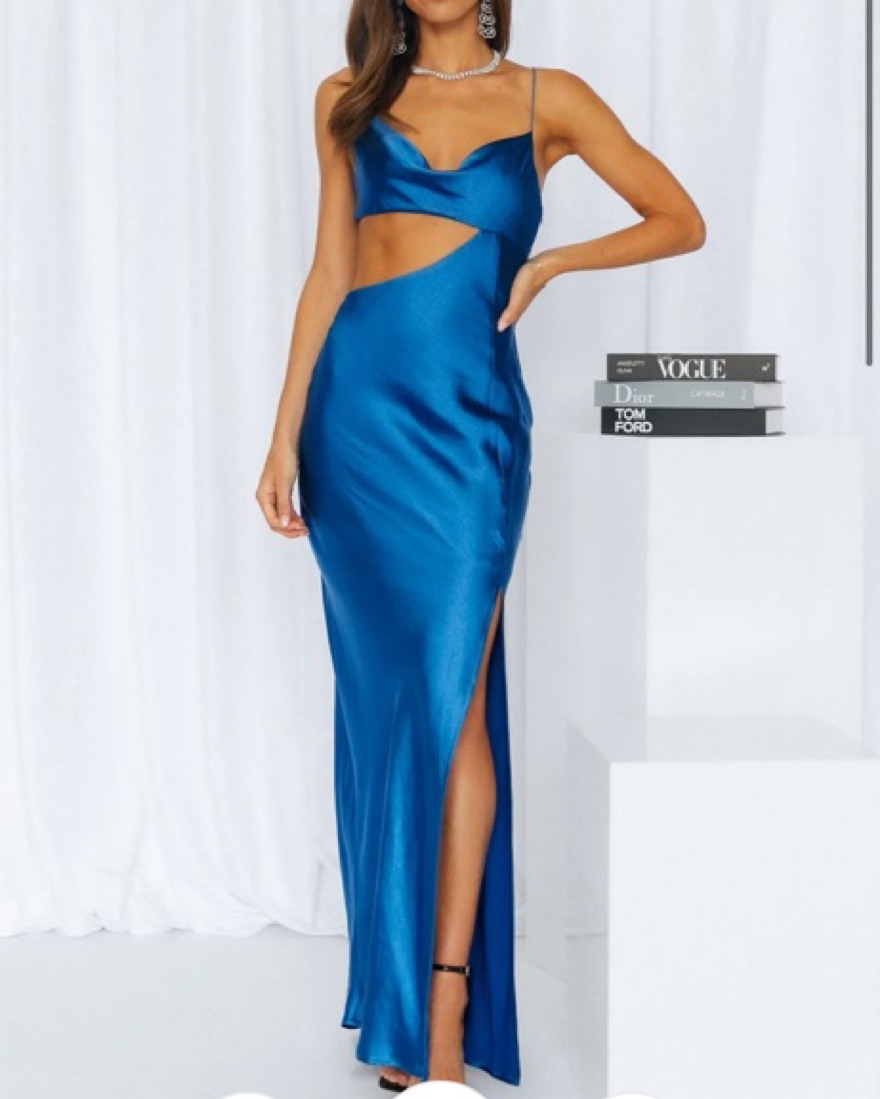 Blue Silk Cut Out Maxi Dress by Hello Molly - Pickle