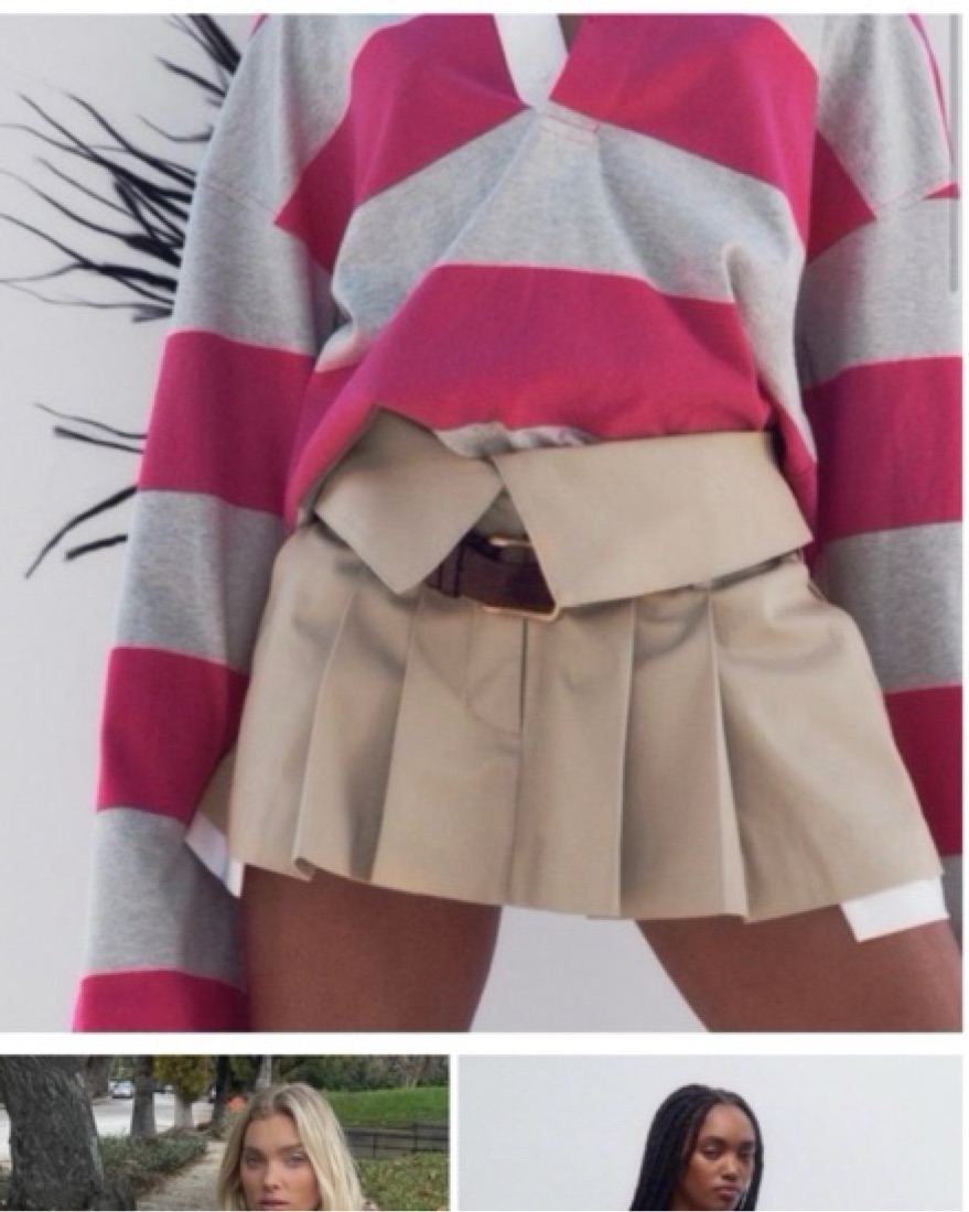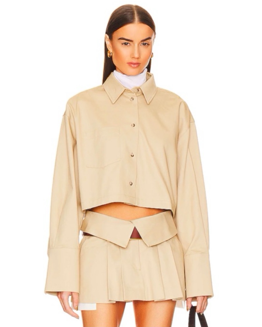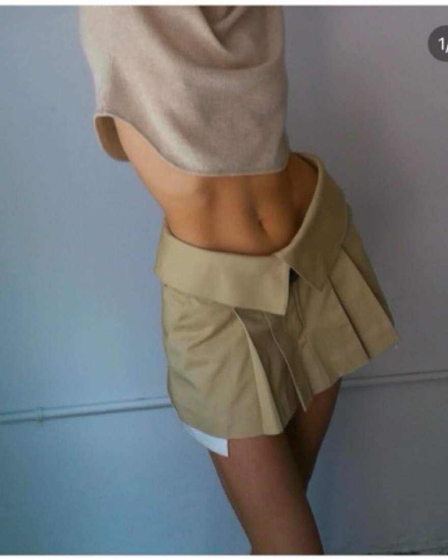 Self: 100% cotton, fully lined. Front zip, fold over waist. Such a cute Scandi-style mini skirt with modesty shorts built it. Mid-weight twill. Tags: casual, mini, Helsa, tan skirt, spring style, etc Miu Miu, fall, layers, going out look, day to night. Looks so adorable with or without belt. TTS.