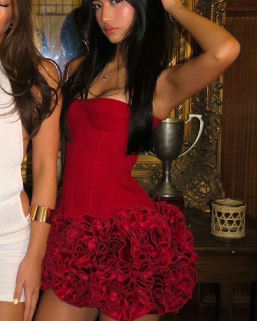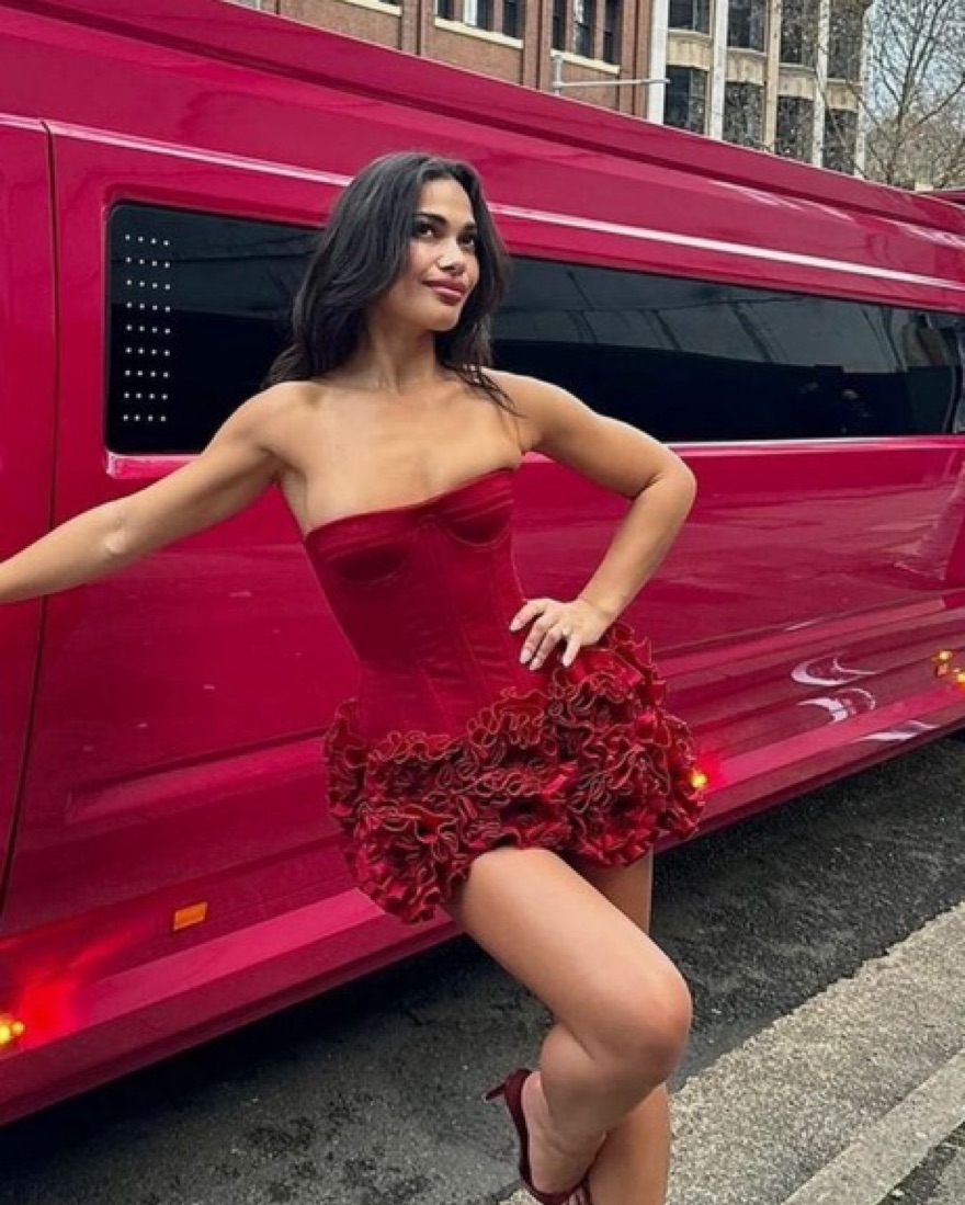 Size M fits 4/6. Corset adjustable in the back. Also an added zipper on the side. Custom made boutique dress to mirror Fanci club. If you need a smaller size, I also have size extra small and small as listed in my closet. Please take a look.