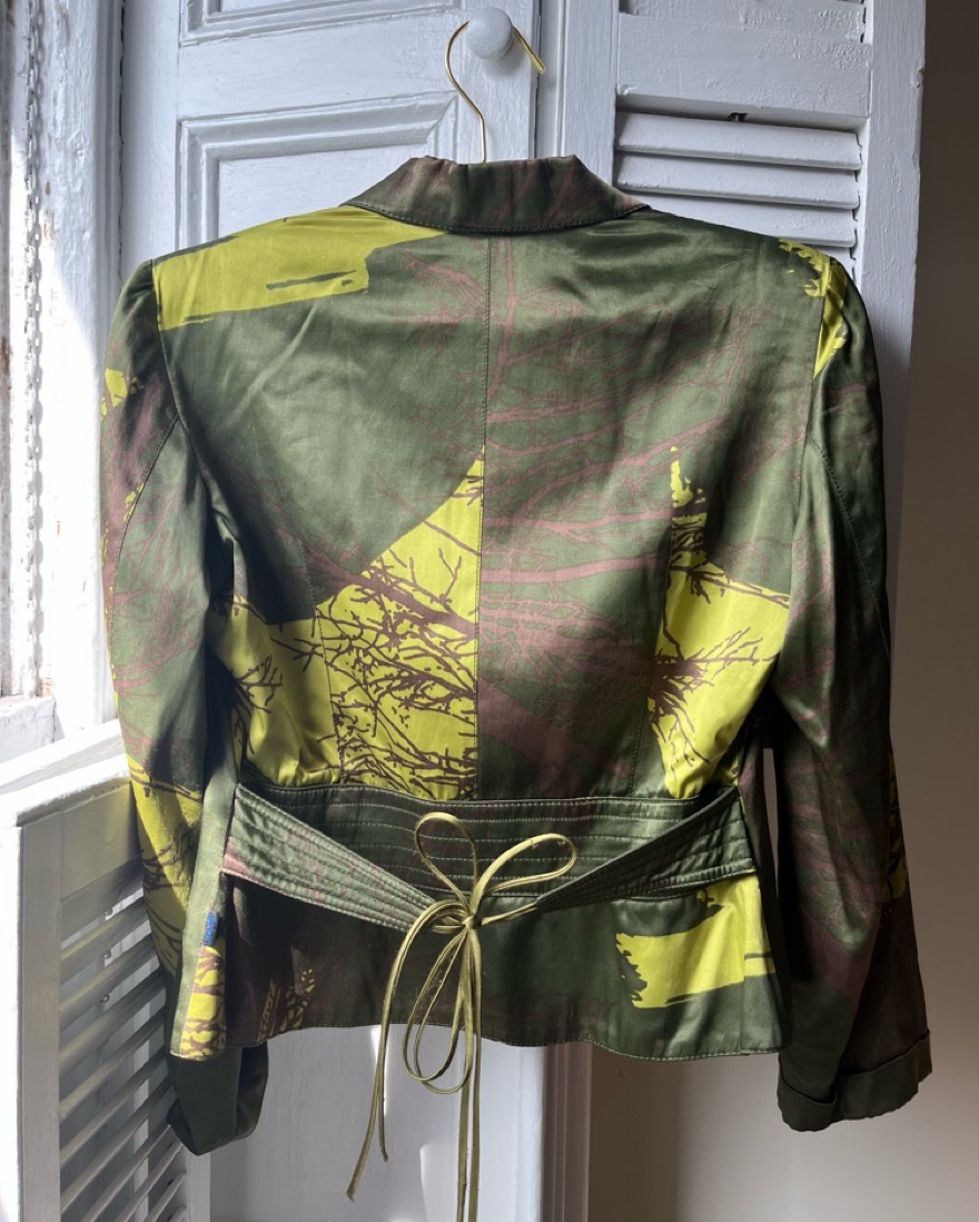 Gorgeous print and looks even better on. Very slight shoulder pads and a little belt you can bow in the back or wrap around for a sinched waist.