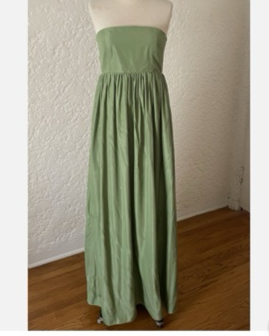 Tibi Eco poplin strapless cocoon dress in sage. Size 0.