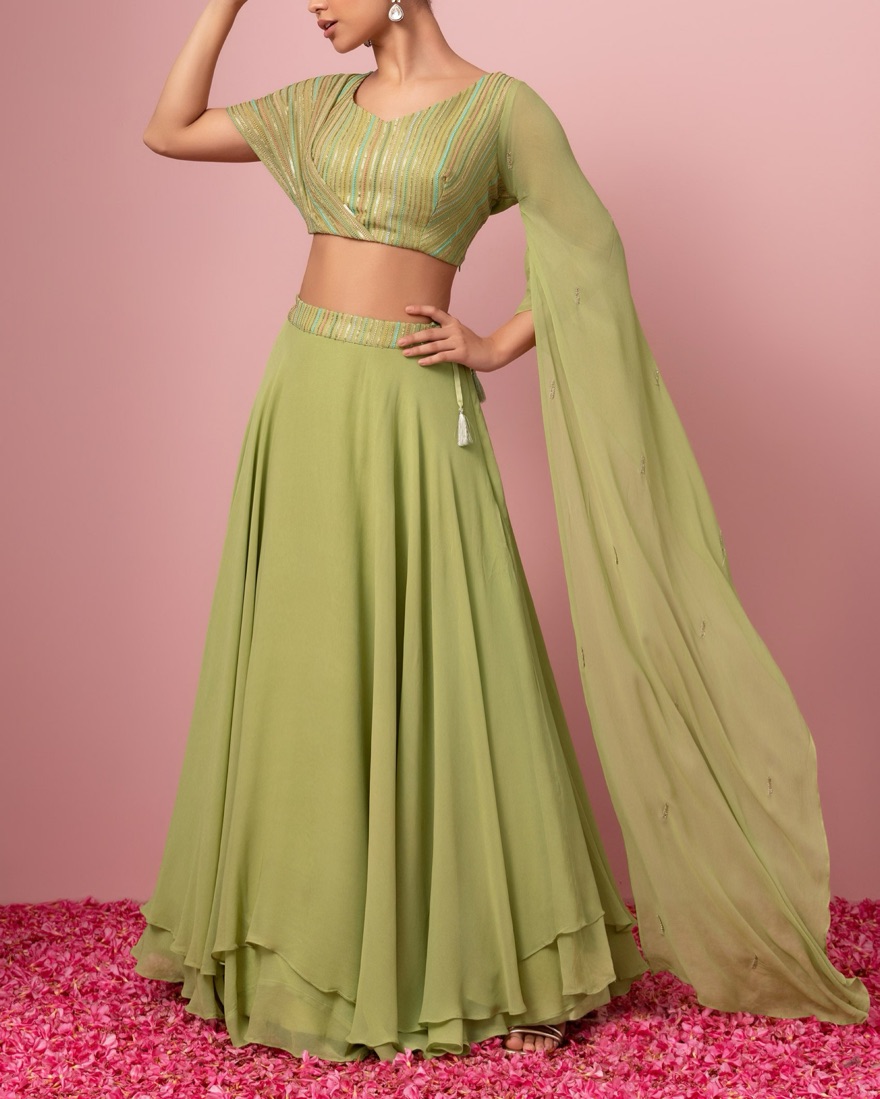 House of Indya Asymmetrical Lehenga Set / Top is Medium / Skirt is adjustable and can fit any size