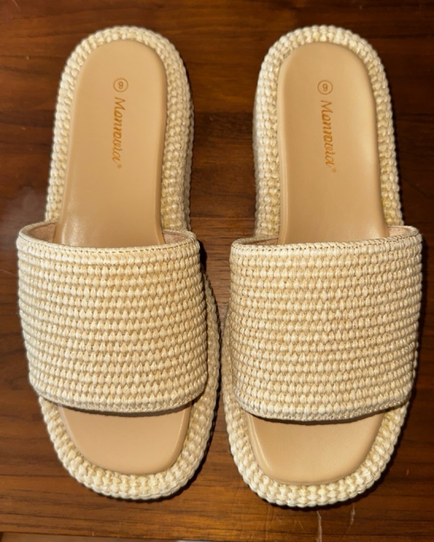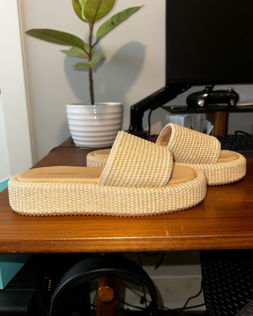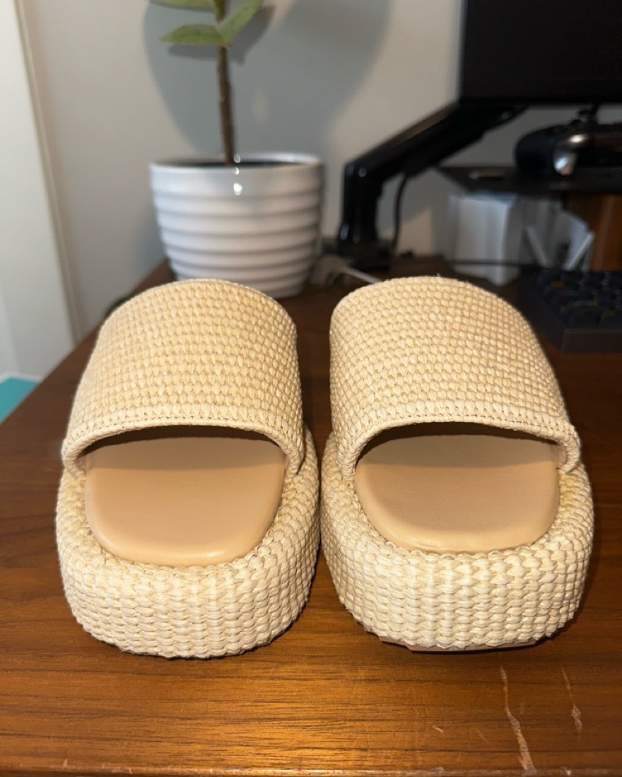 Neutral woven platform sandals. Size 9 but run half a size big. They are more like a 9.5. Brand new, never worn. Perfect for vacation or the beach!
