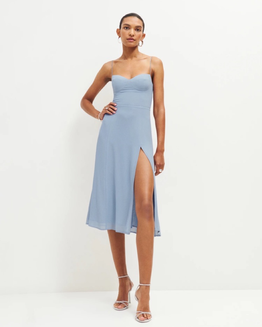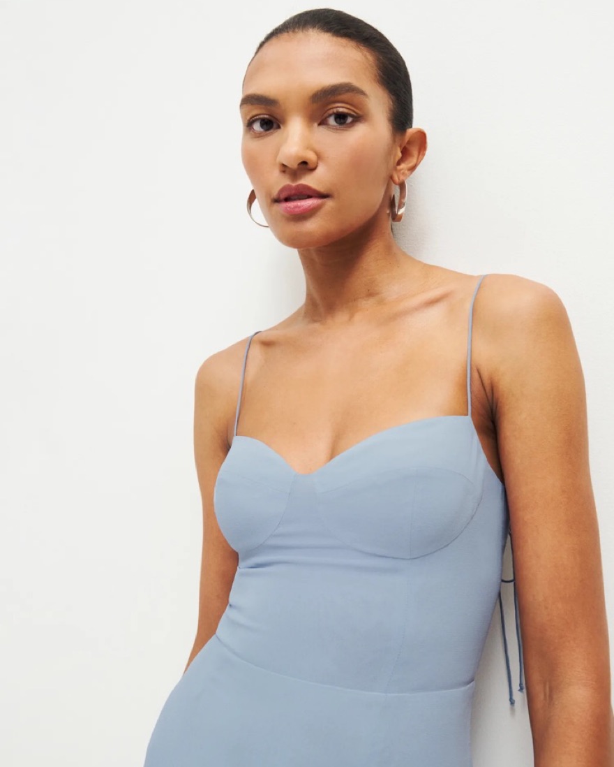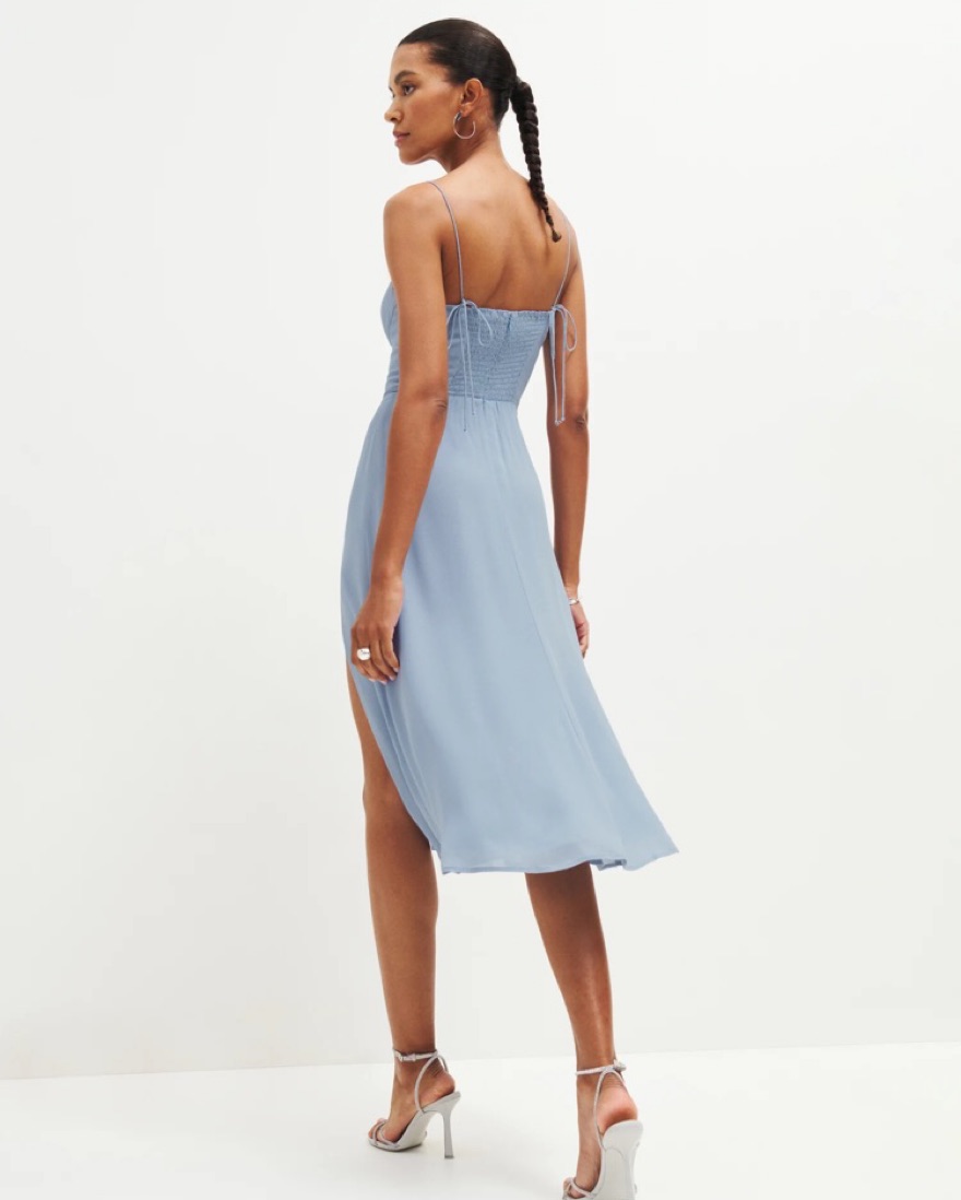 Designed to be fitted at bodice with an A-line skirt. Tie straps, sweetheart neckline, side slit. Back zipper. This is a lightweight georgette fabric with a dry handfeel - 100% viscose.