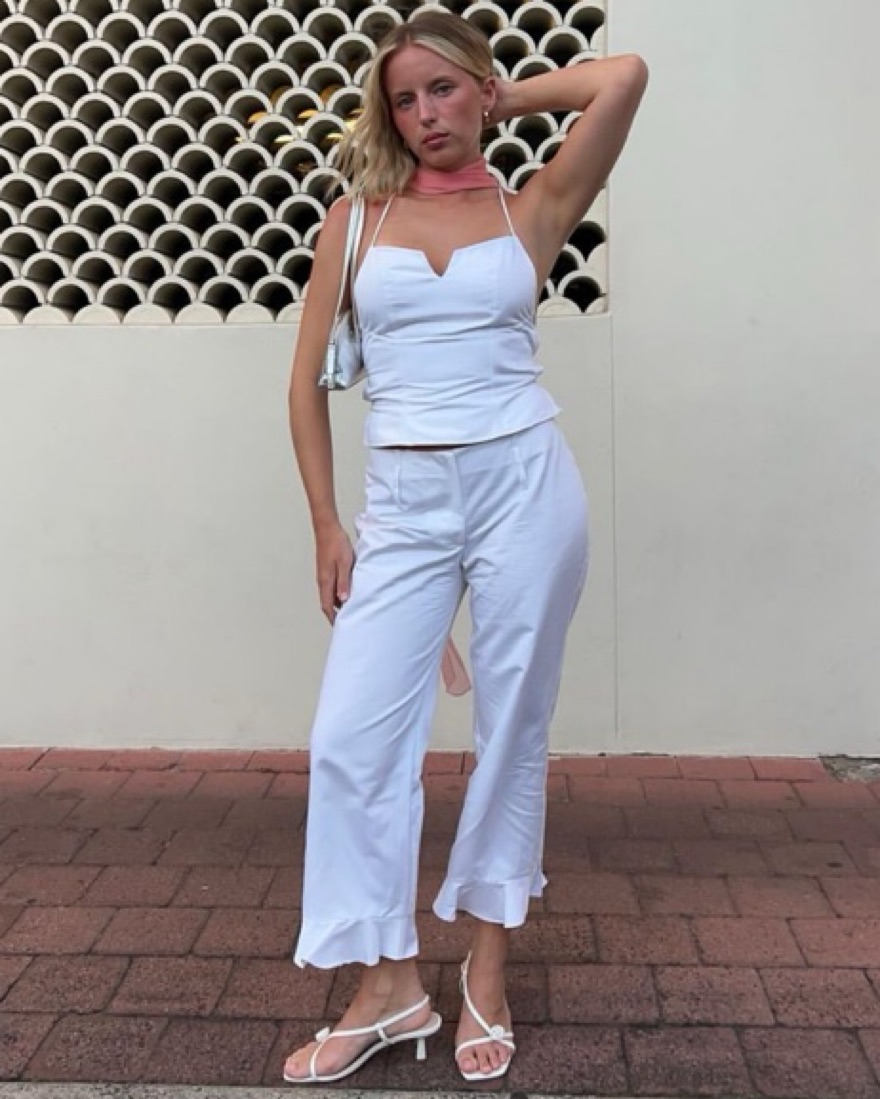 Available 4th!!! Capri bottom and tie top. Also have scarf listed separately. Perfect white set for the hamptons! Fits 6! MUST be dry cleaned by you if it gets dirty. Please treat white items as if they are your own! Perfect for: hamptons, all white outfit party, reformation, farm rio, zimmerman