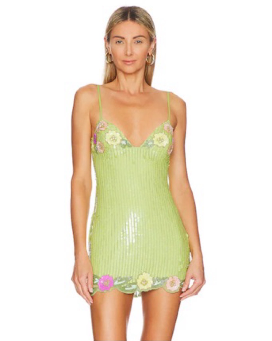 cal embellished mini dress brand new in perfect condition size small. 100% polyester Made in India Dry clean only Fully lined Hidden back zipper closure Adjustable shoulder straps Sequined embellishments throughout with floral embroidery on bust and hem