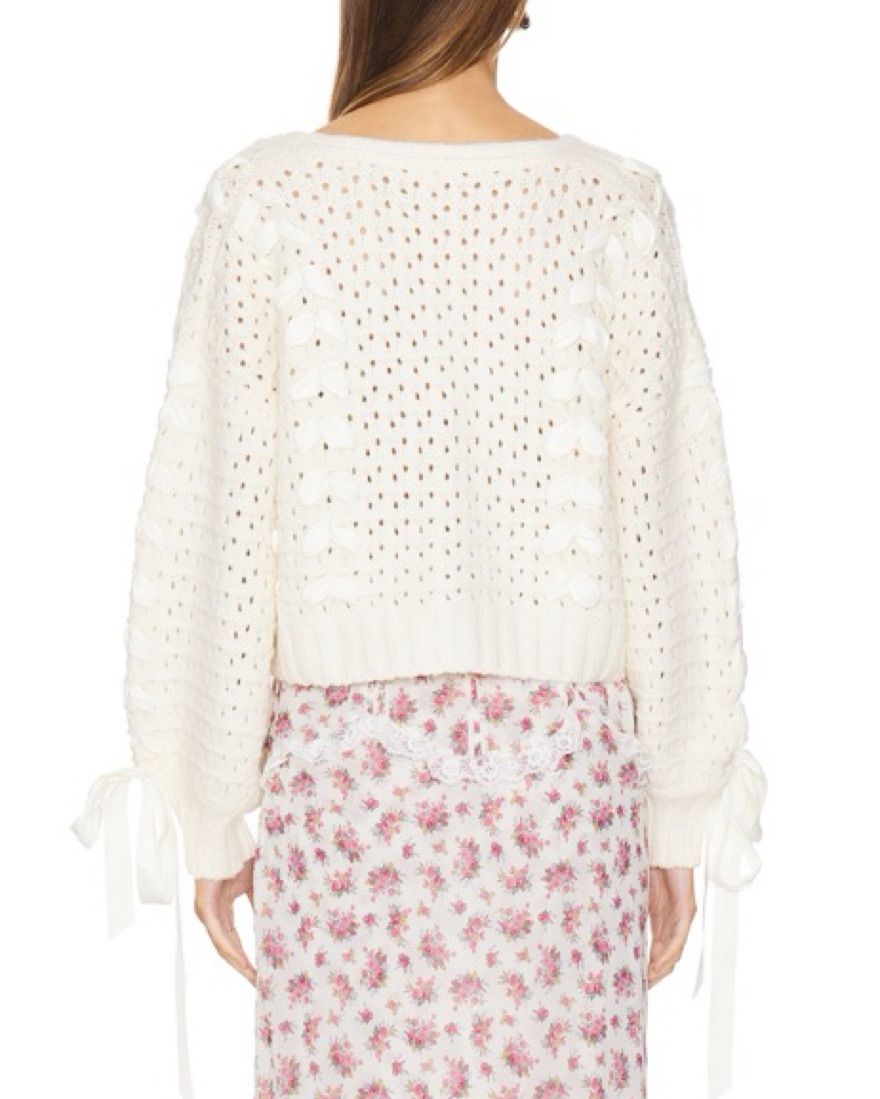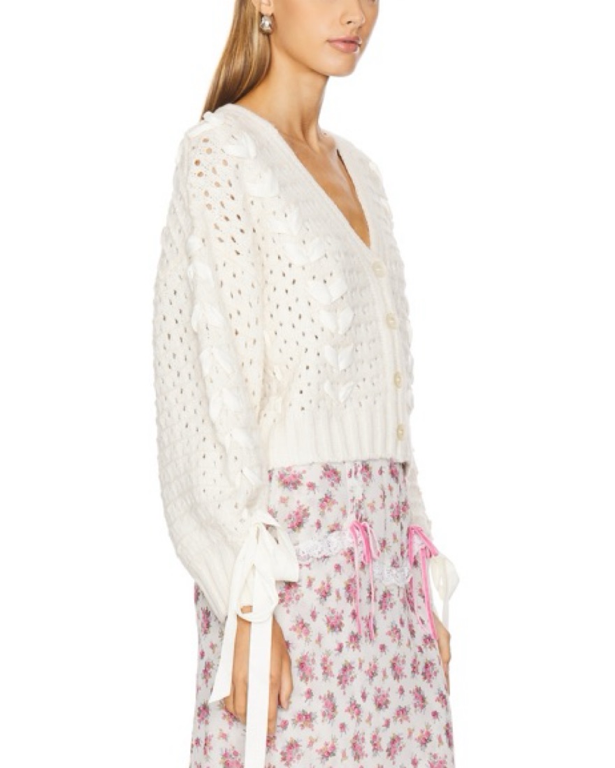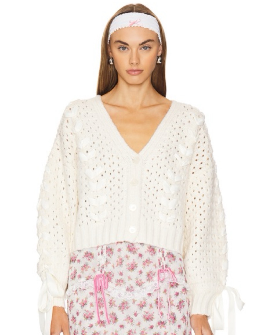 For Love & Lemons Over-sized cream cardigan. Worn once, so cute with the bows.