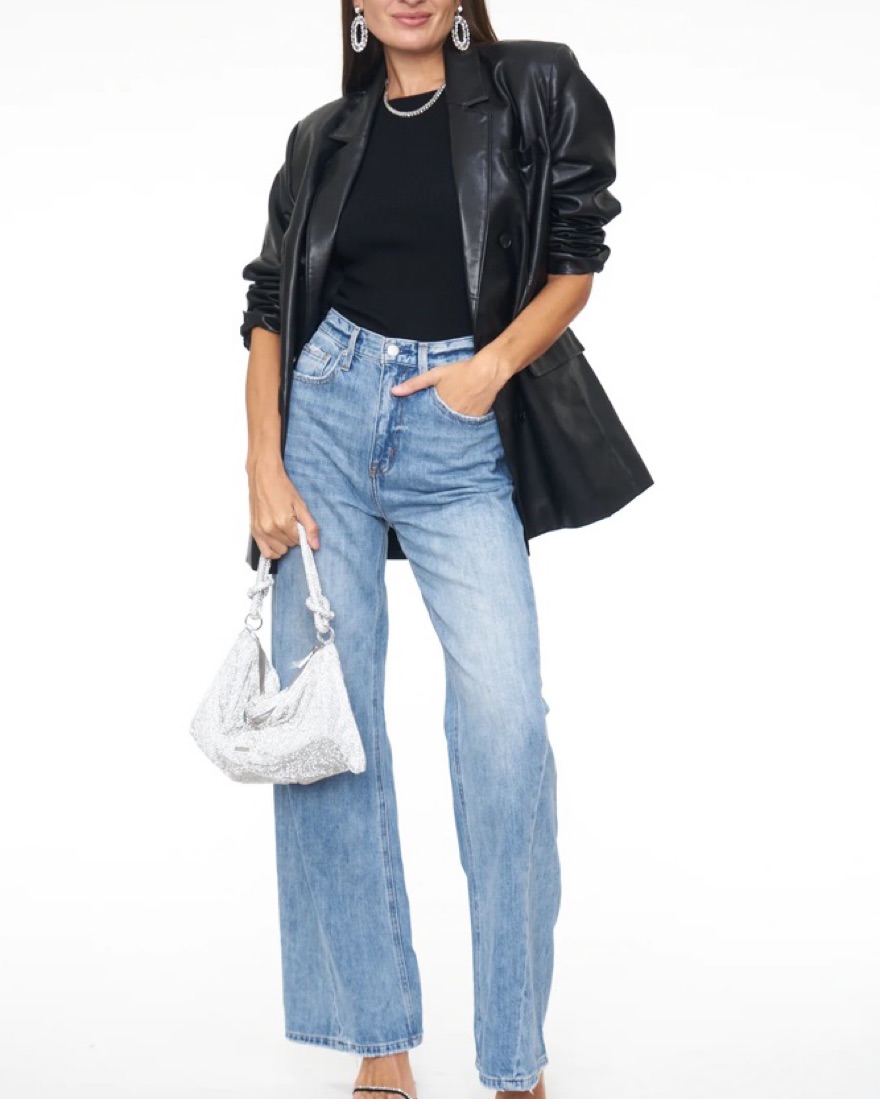 Oversized Pistola Faux Leather Blazer by Pistola - Pickle