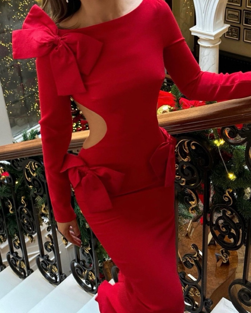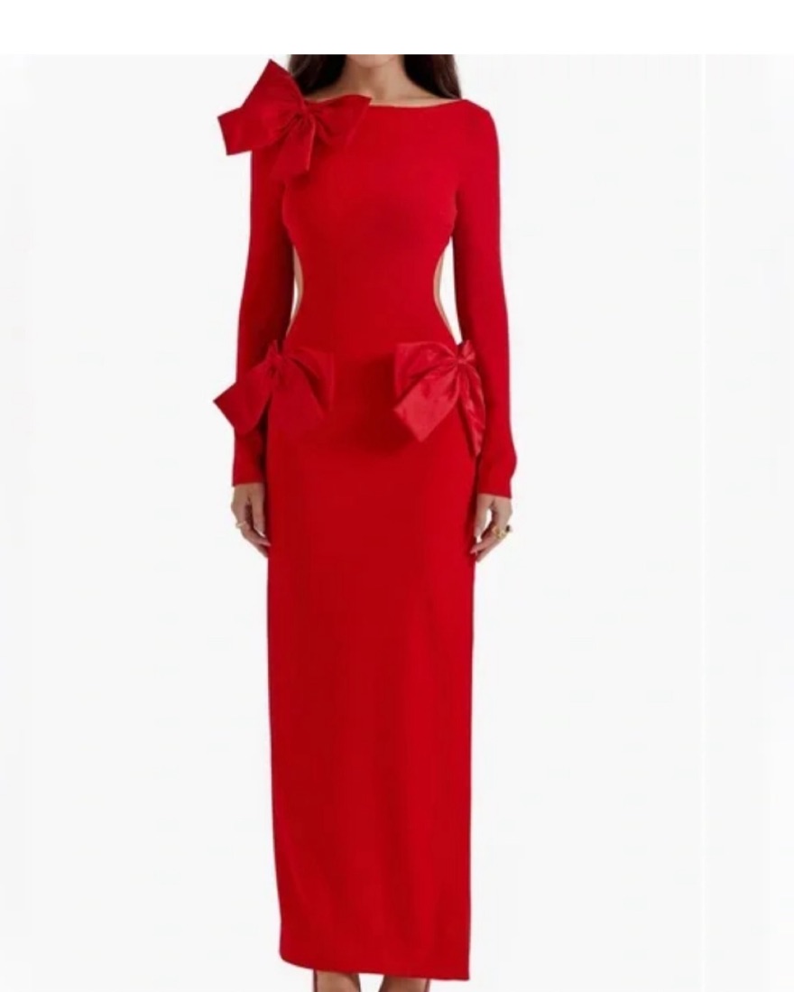 House of CB red bow dress size small
