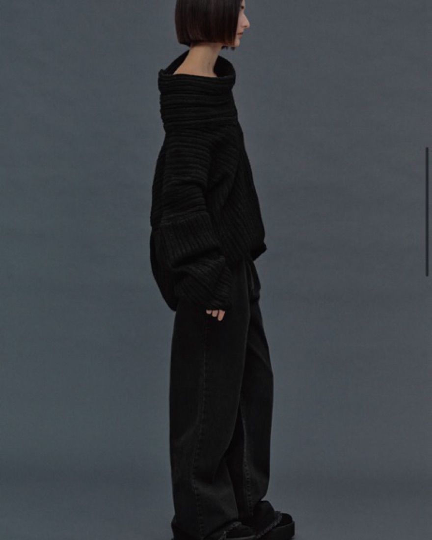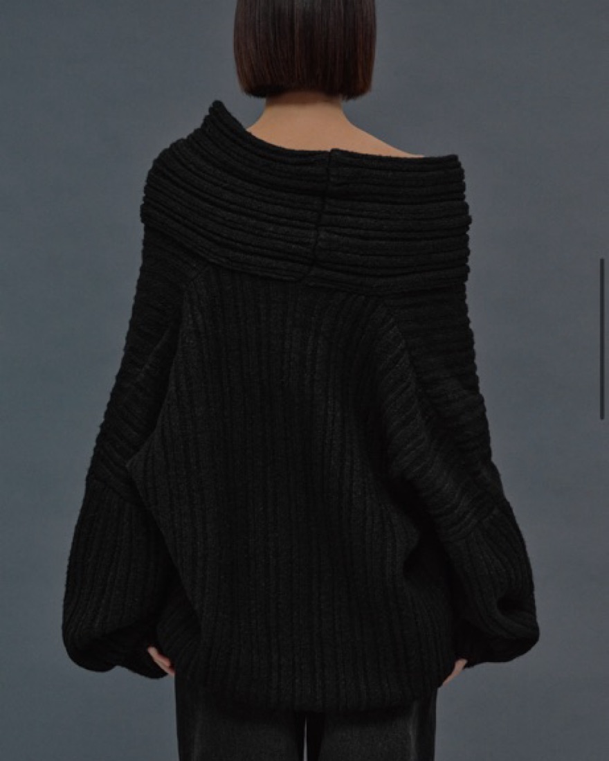 BECCA OVERSIZED HIGH ROLL KNIT PULLOVER, BLACK