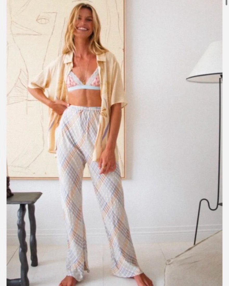 Chic Plaid Vacation Pants by VRG GRL - Pickle