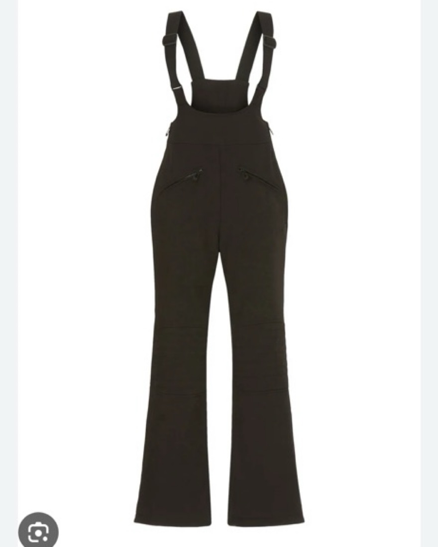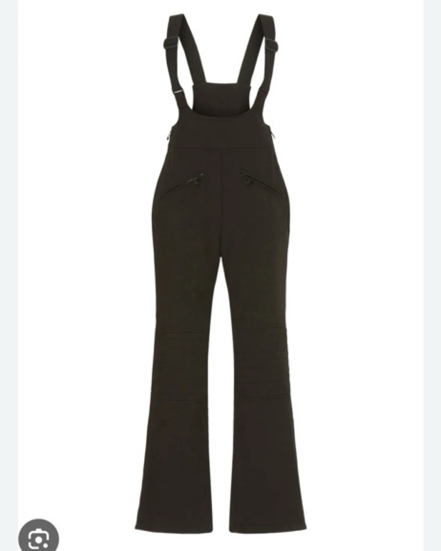 Black ski pants with straps has pocket