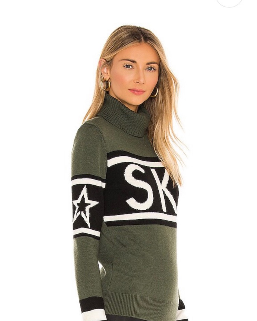 Olive green ski sweater. Perfect addition to any ski or apres ski outfit