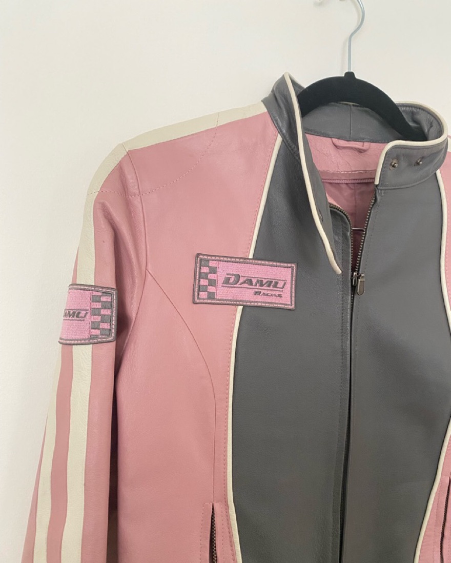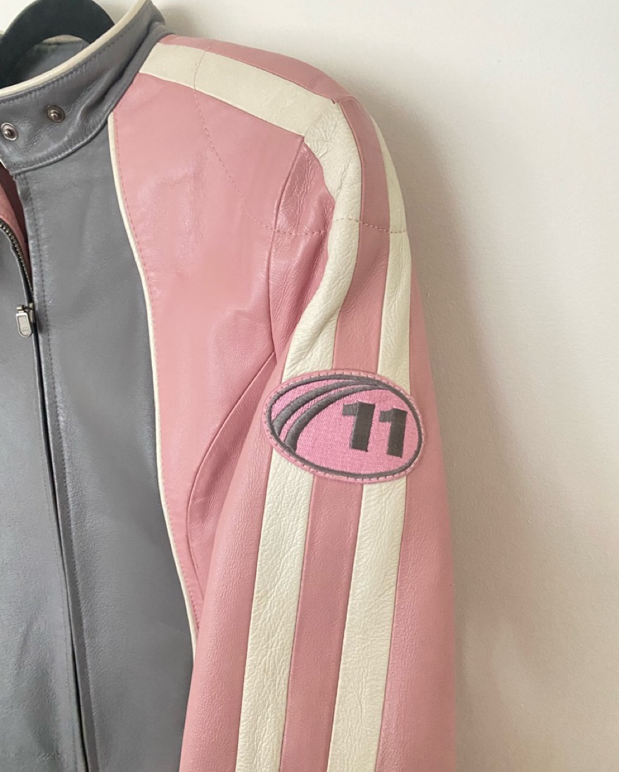 Vintage Pink Leather Racing Jacket by Vintage - Pickle