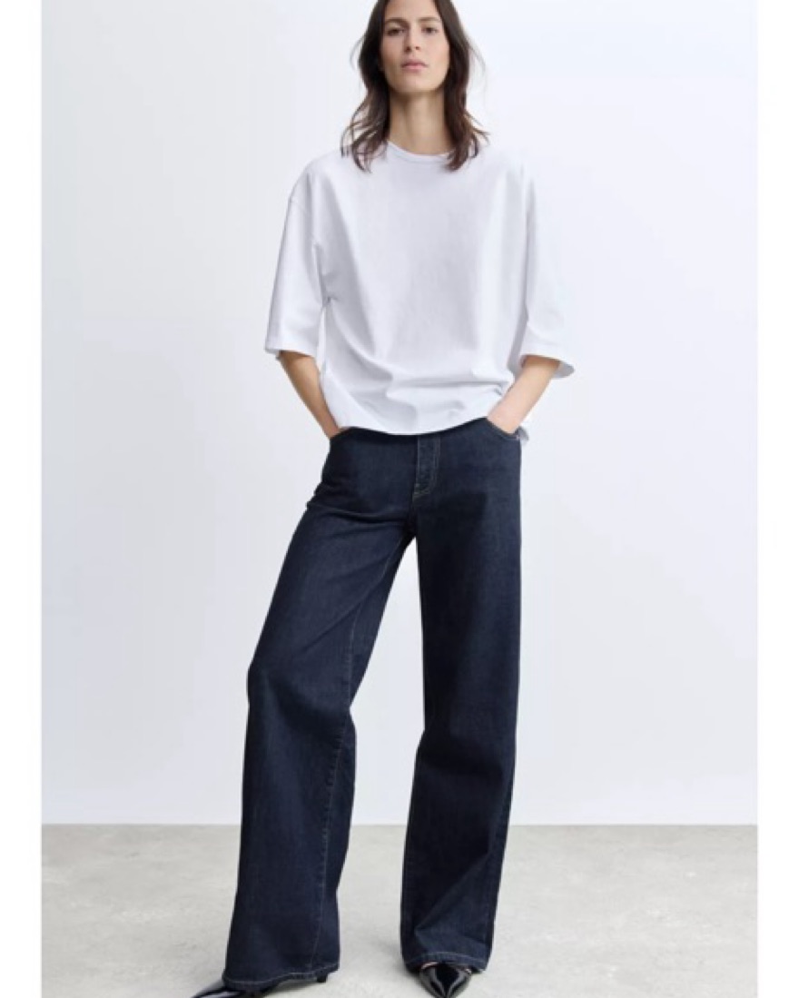 These versatile wide-leg denim pants offer a comfortable, effortless look. Pair with a simple tee and sneakers for a casual, everyday ensemble.