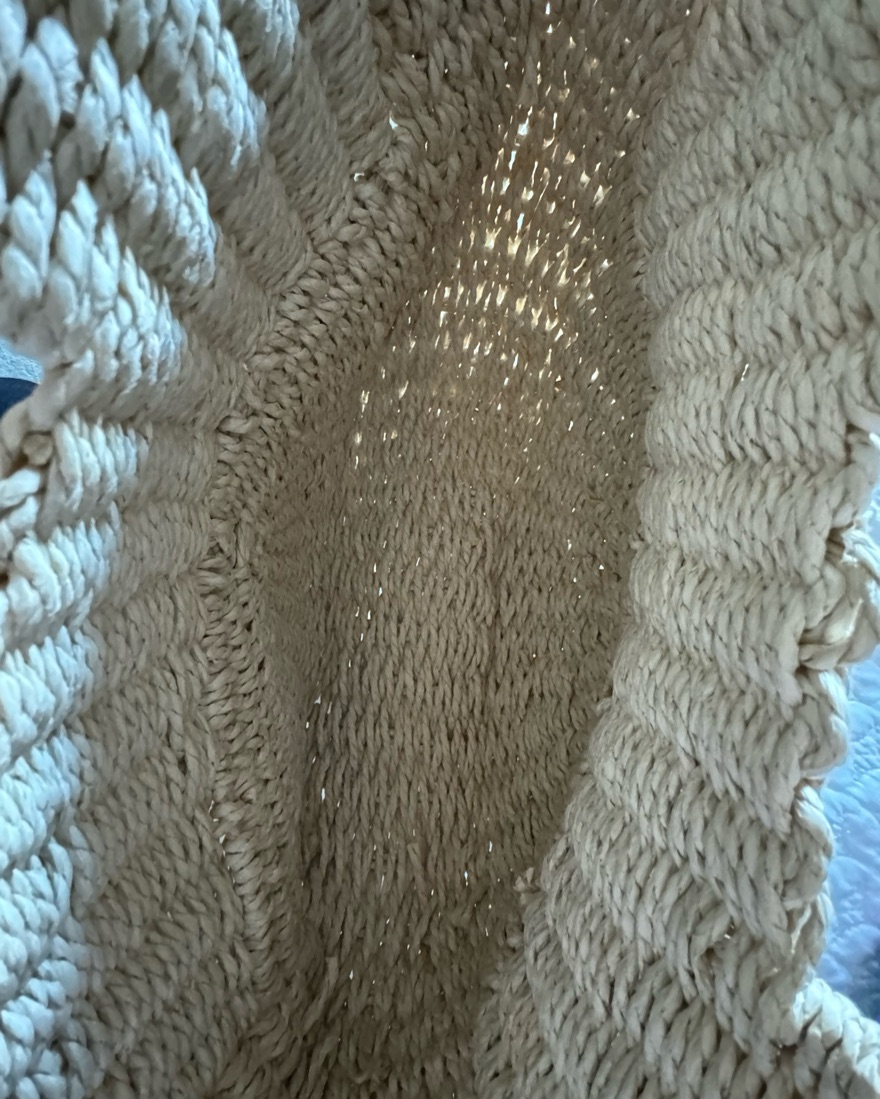 Super cute handbag - fits perfectly a wallet, phone, swimsuit, sunglasses, and sunscreen (everything you need without being too big/tote-like) super instagrammable bag. I can’t remember where I purchased or the brand. Used only few times on vacation. Highly recommend.
